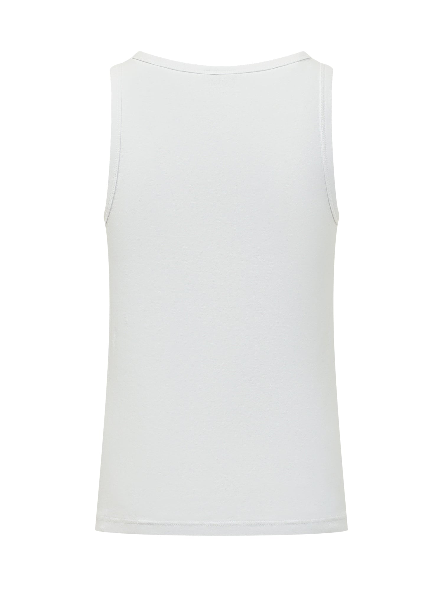 Ribbed tank top with round neck, sleeveless design with logo on chest.