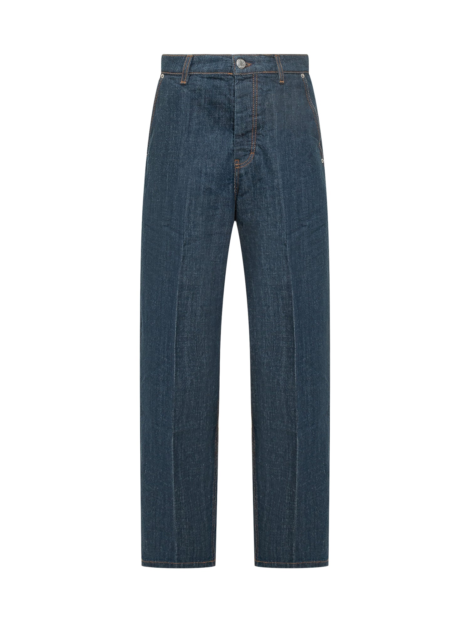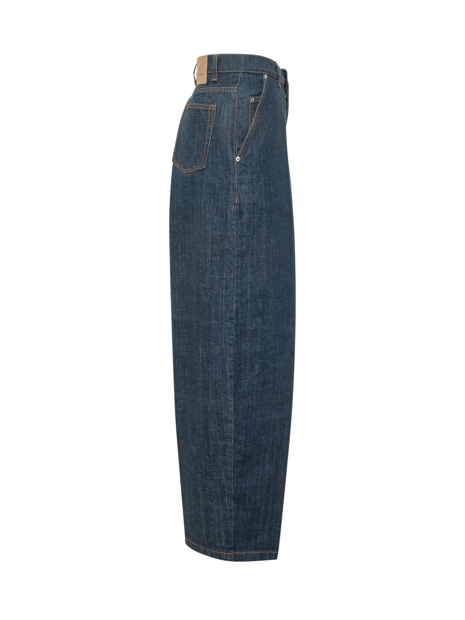 High waisted five pocket jeans with button closure. Wide rounded leg and regular hem for a bold style.