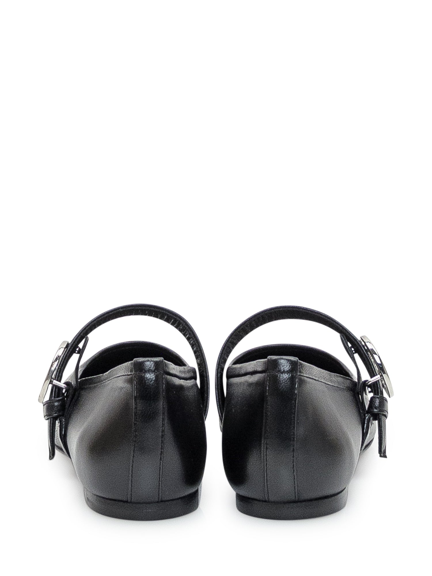 Black leather ballerina. Buckle with logo. Leather insole with logo. Flat sole in leather