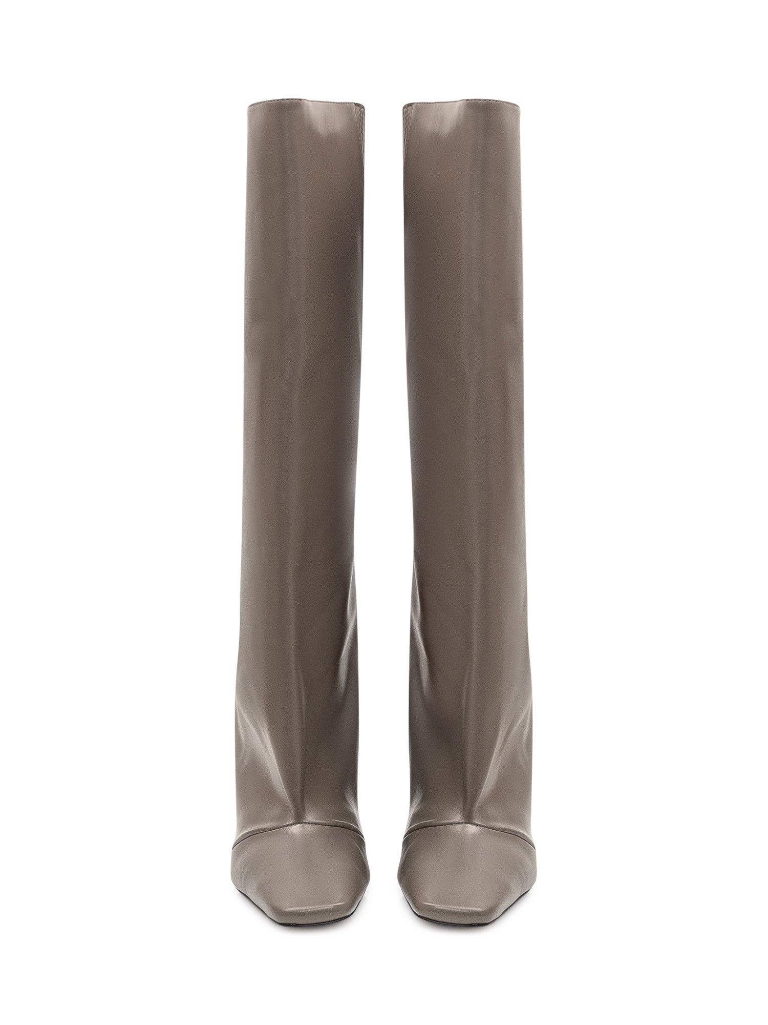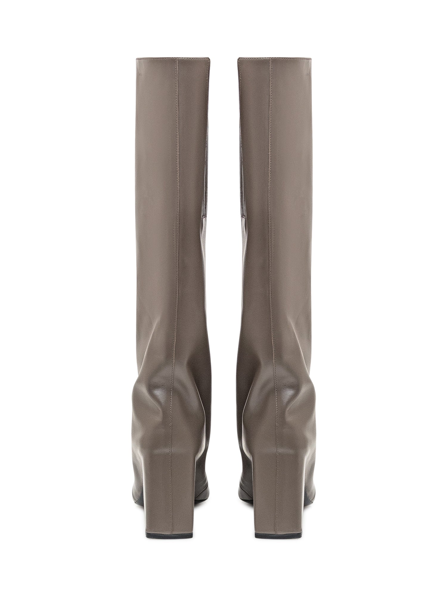 Tall boot with a minimalist design, featuring a sleek pointed toe and sculptural heel.Heel Height: 3.54