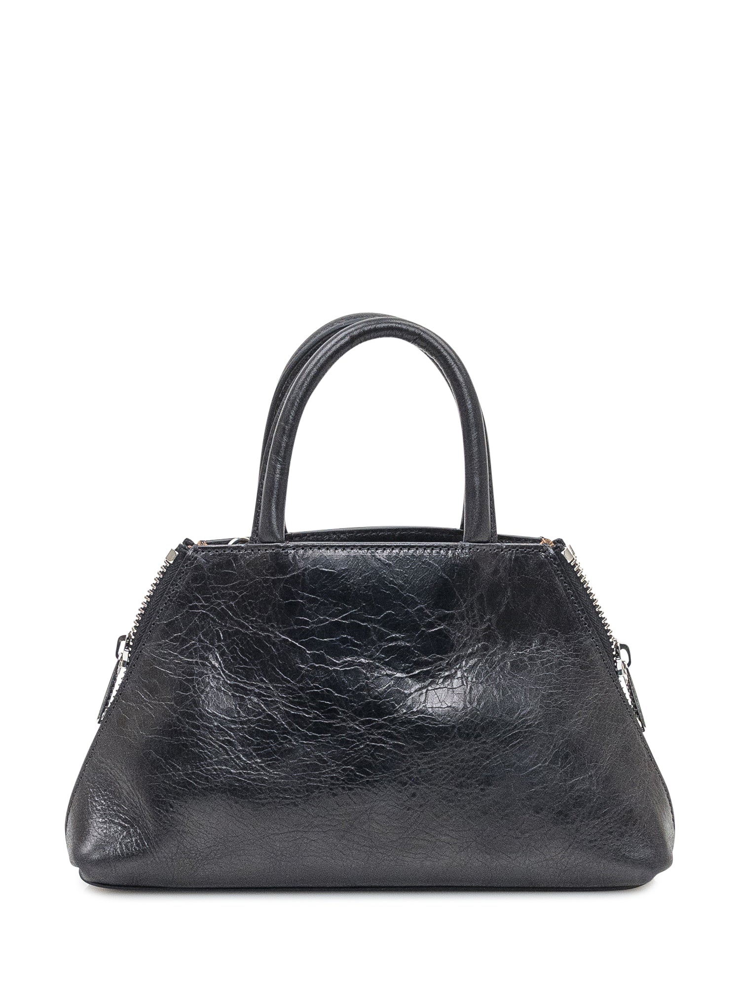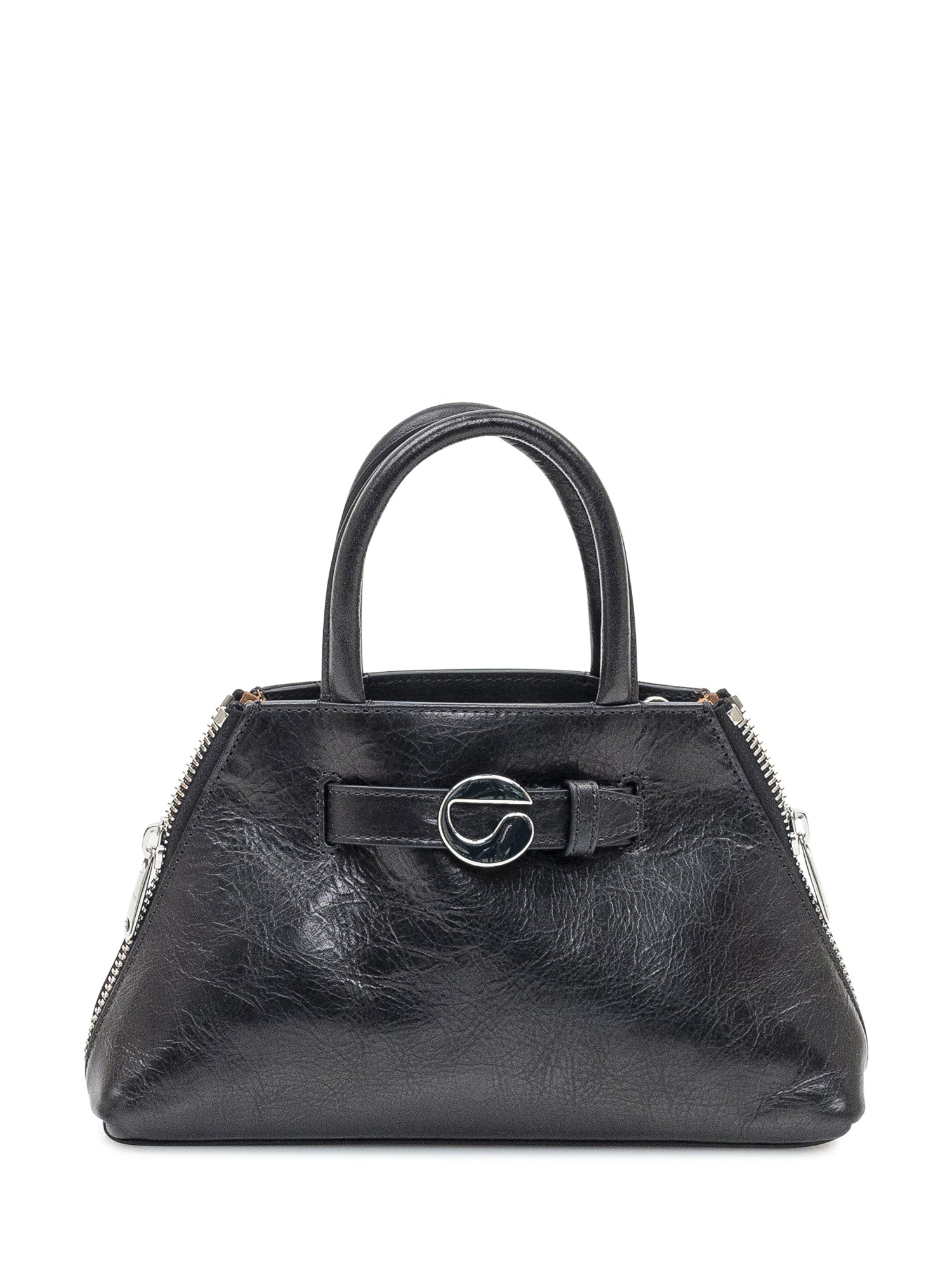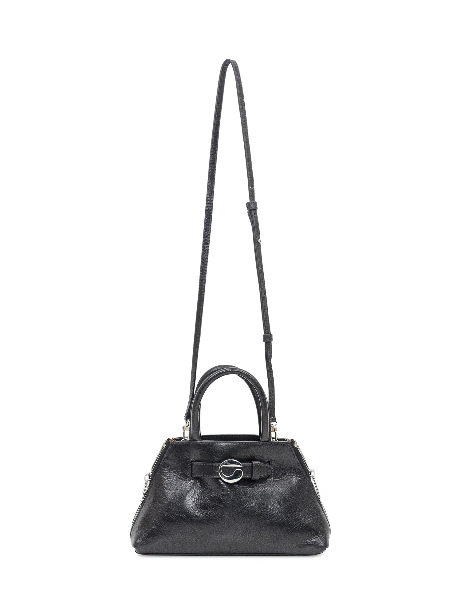 Coperni Mini Data Bag in black leather with top handles and side zip closure. Featuring the signature metal logo detail, this compact and versatile bag.
