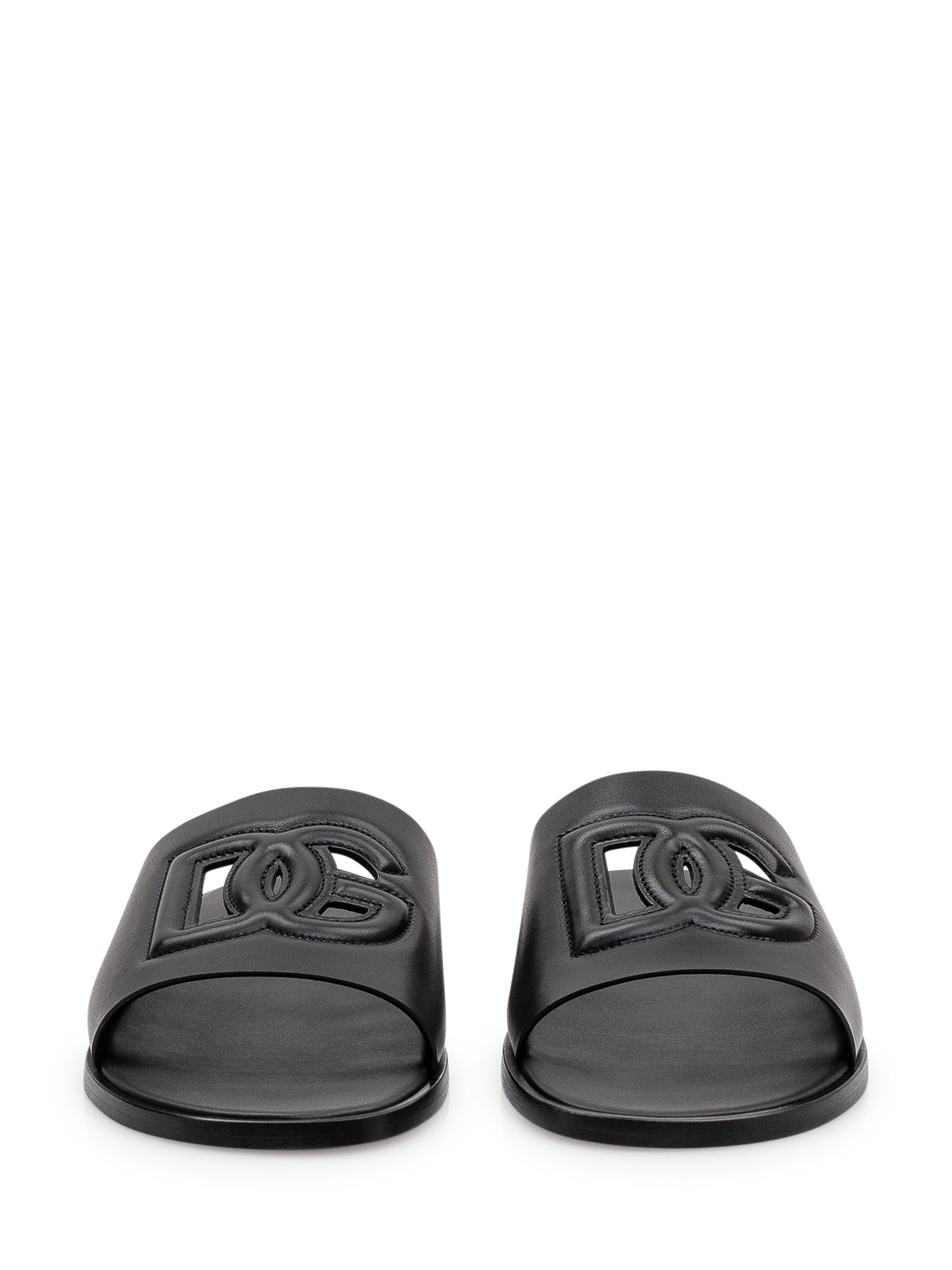 Minimal and elegant slide sandal crafted from soft nappa leather, featuring a wide upper strap, flat footbed, and low sole.