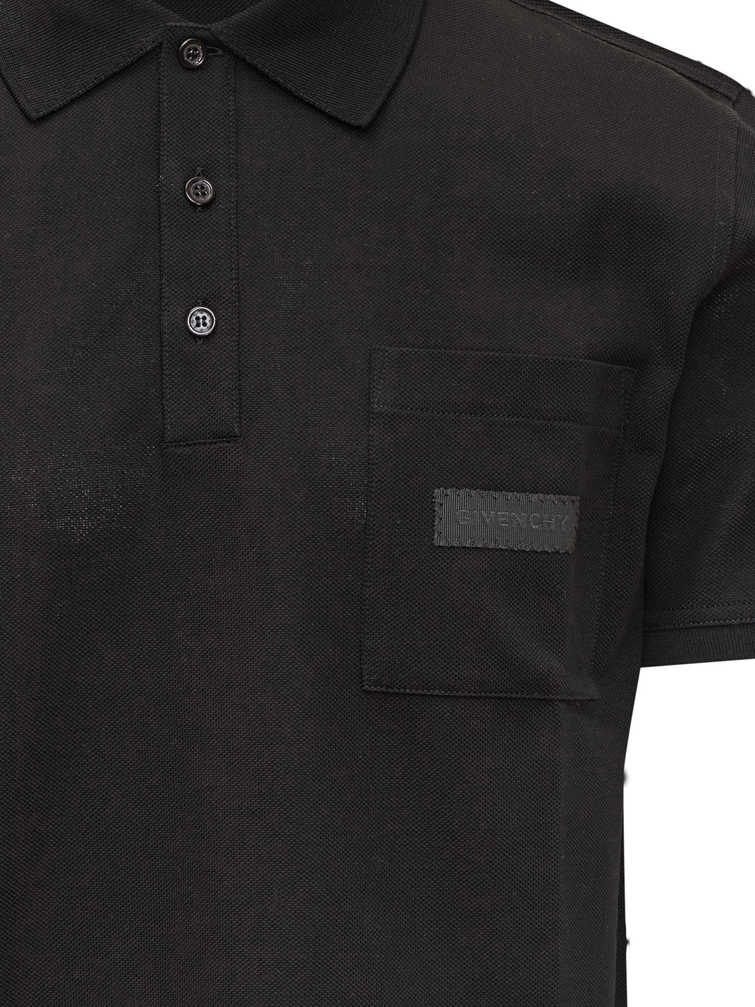 Black cotton polo with chest pocket and tone-on-tone Givenchy patch.