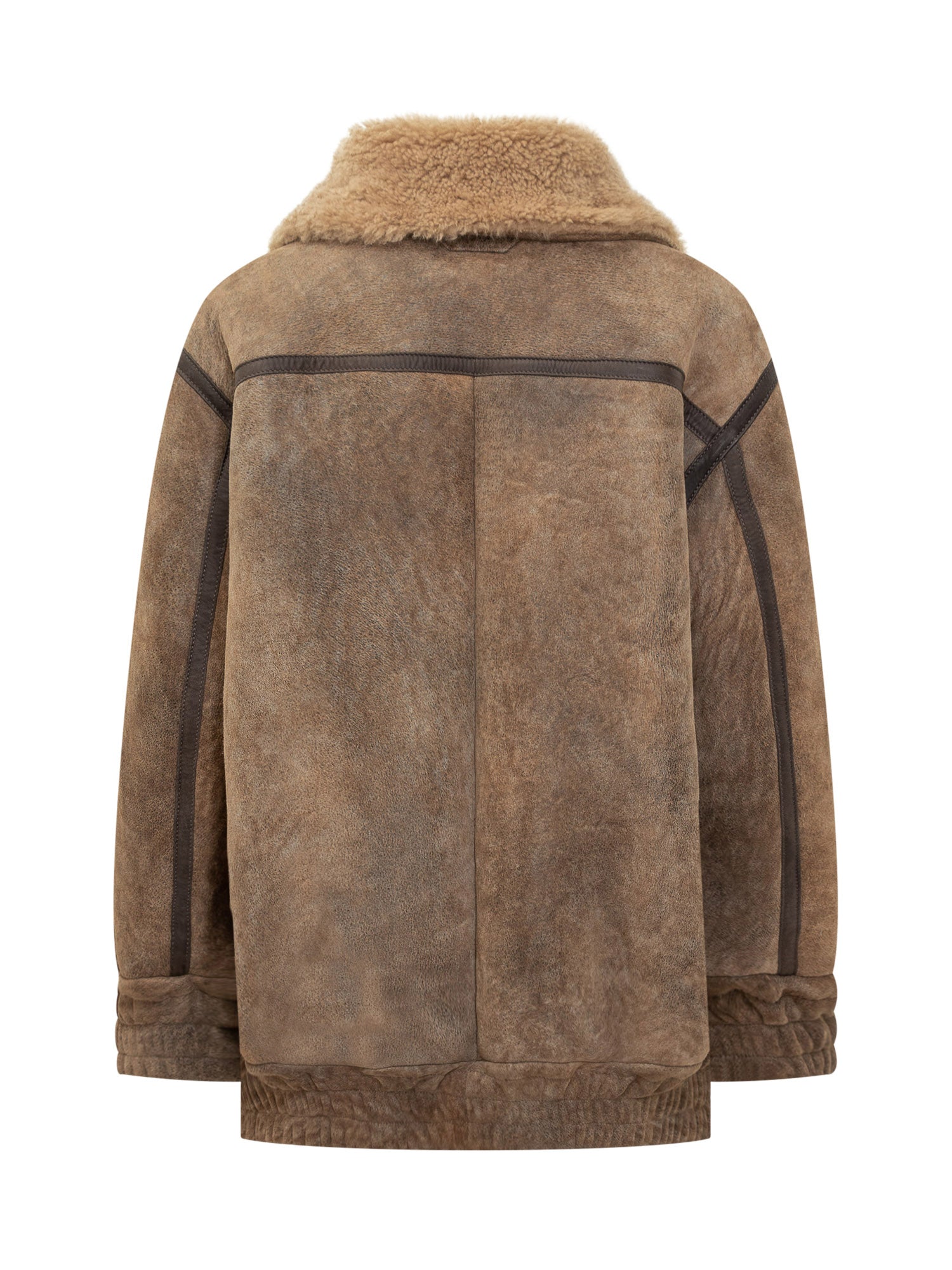 Salvatore Santoro jacket in brown shearling with front zip and contrasting fur collar.