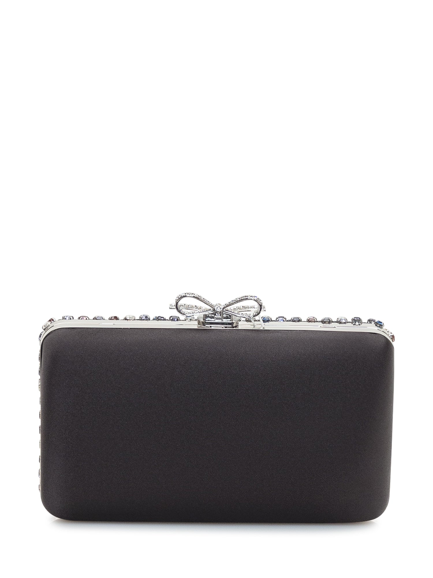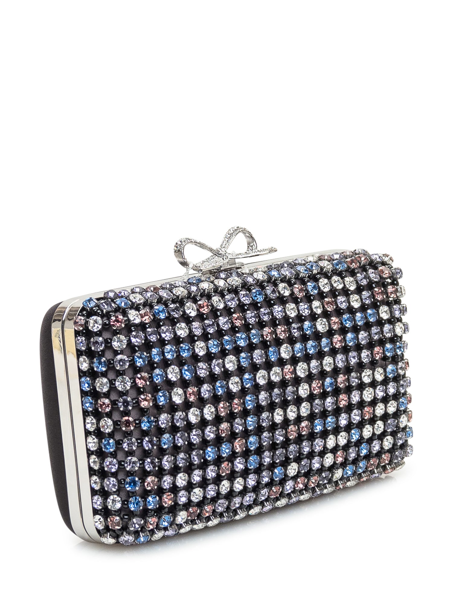 Compact clutch with chain-mail effect and sparkling embellishments. Features a structured shape, jewel closure and minimal interior.