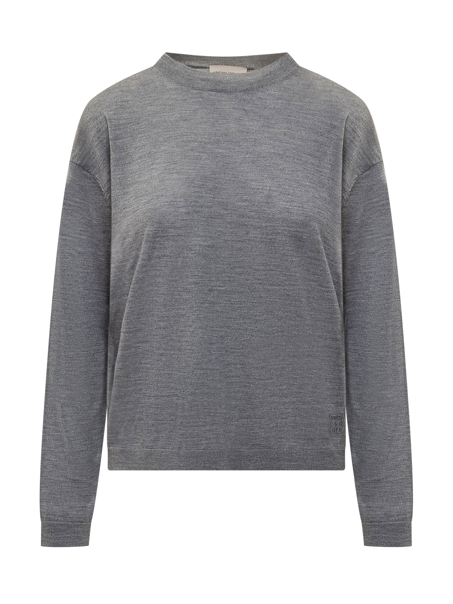 Virgin wool long sleeve sweater. Crew neck. Ribbed hems.