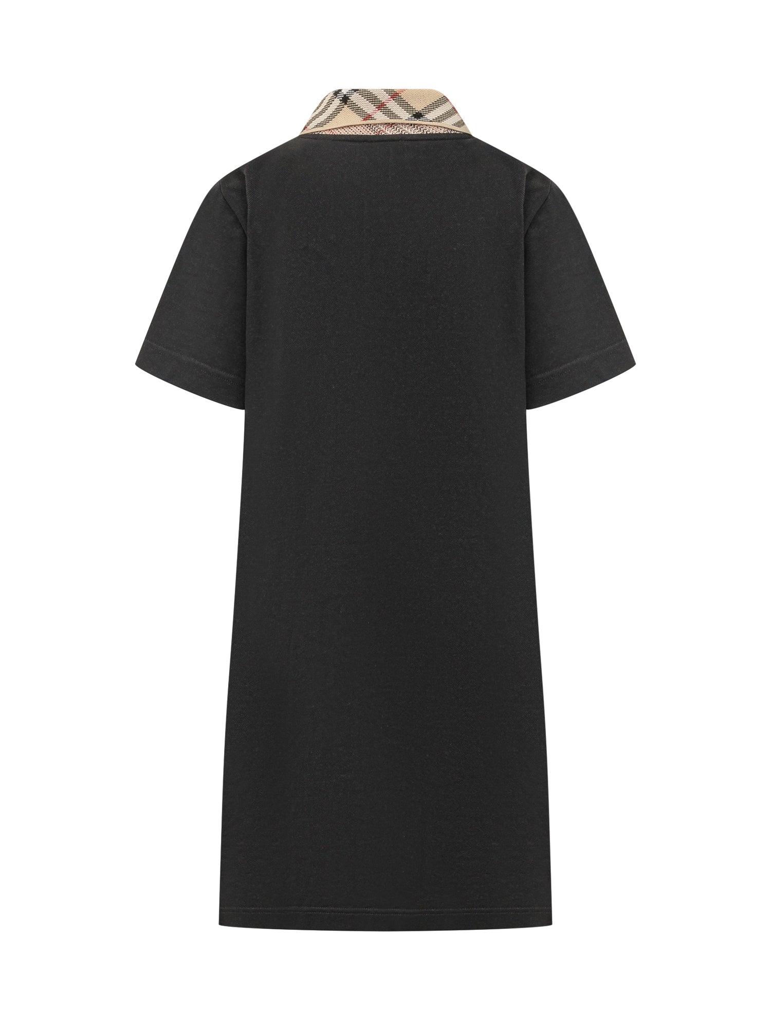 Short-sleeve polo dress with a straight fit and above-the-knee length. Contrast check collar and front button closure. Made from compact piqué fabric.