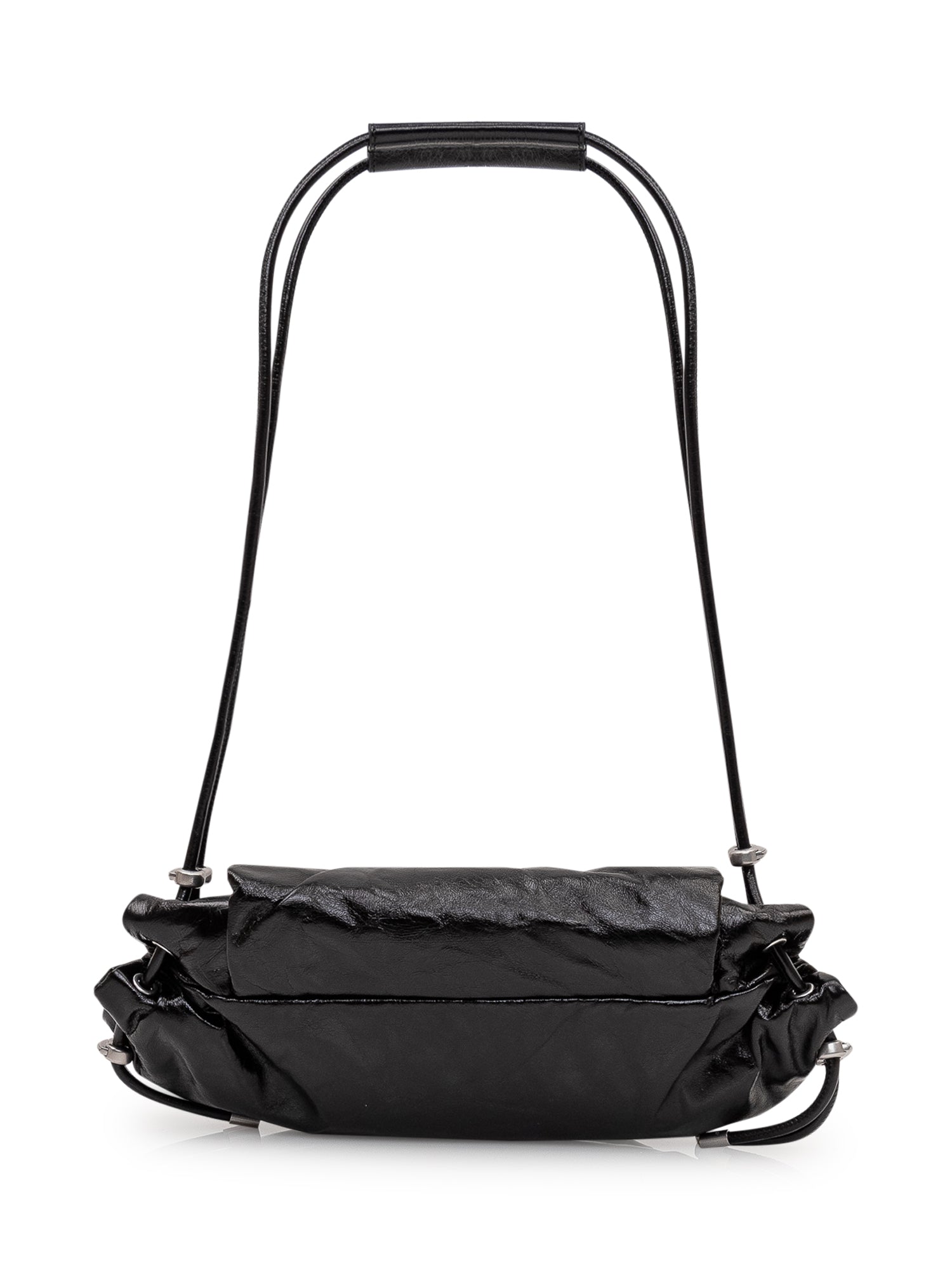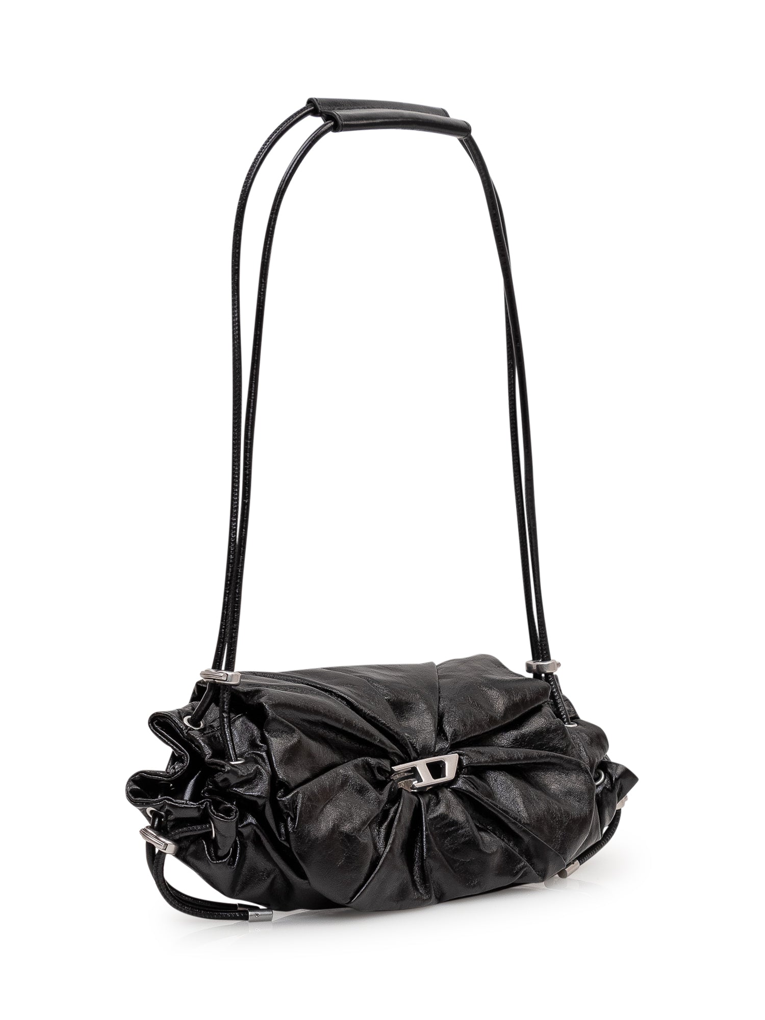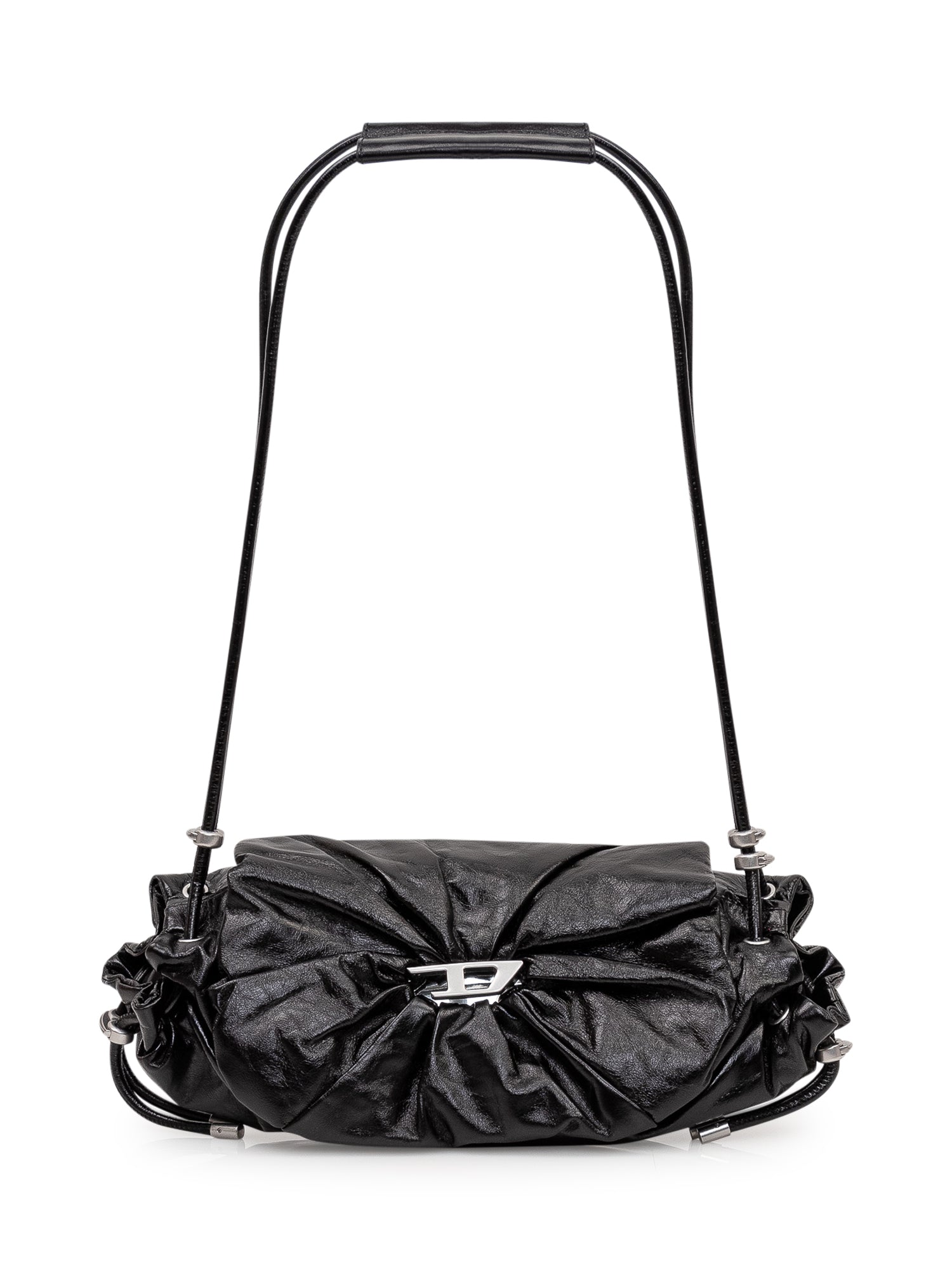 Soft ruched shoulder bag featuring a compact and feminine silhouette. Designed with a central closure with logo detail and an adjustable shoulder strap.Size: 12.99x5.91x2.76