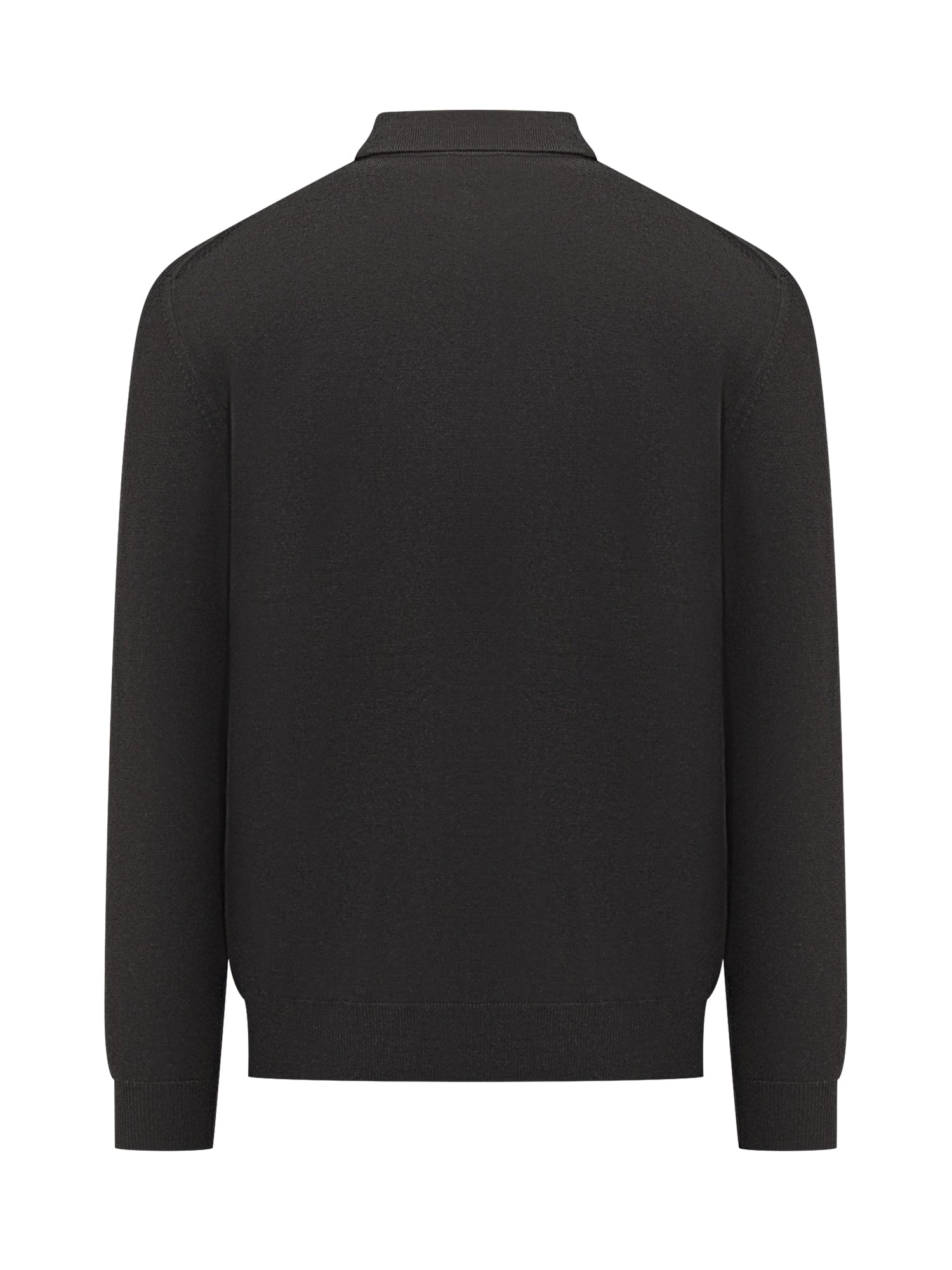 Etro men's polo sweater in black merino wool. Three-button collar, long sleeves, tone-on-tone embroidered logo.