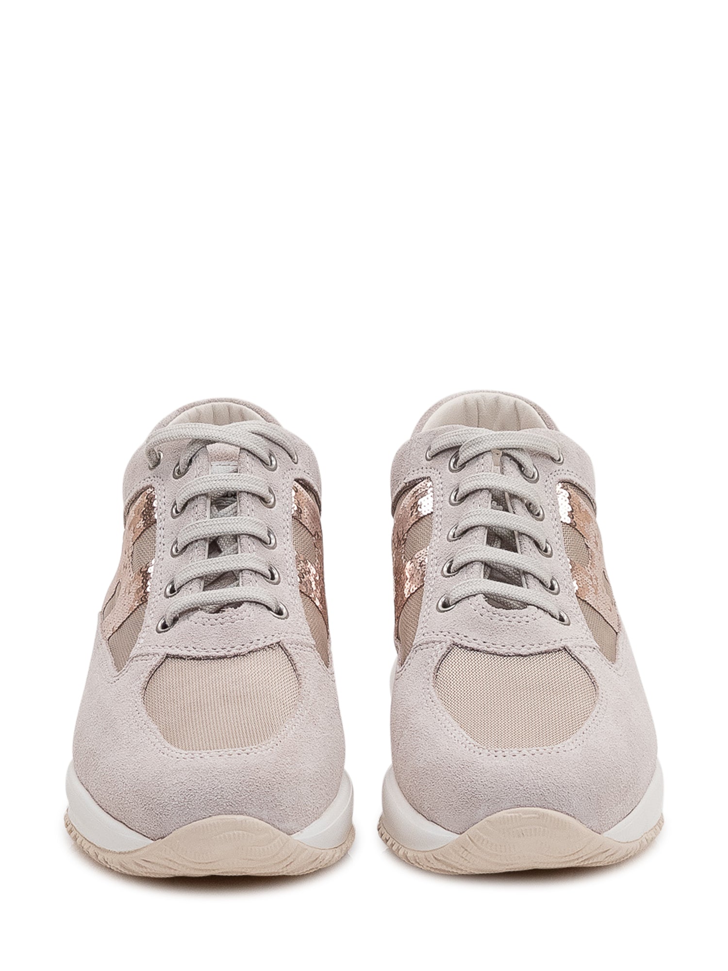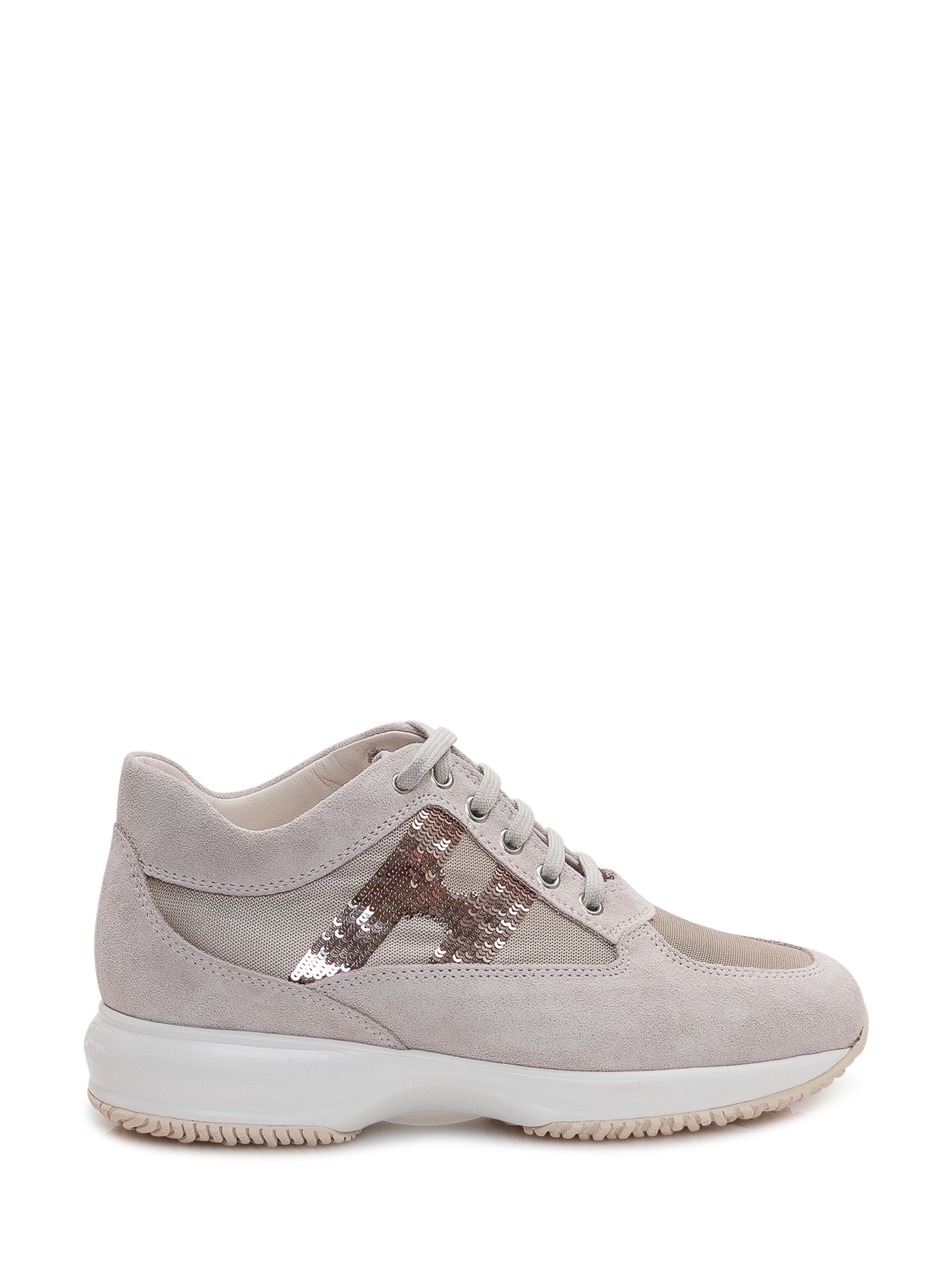 Sneakers in suede and fabric featuring a sequined side insert, sporty and modern design.