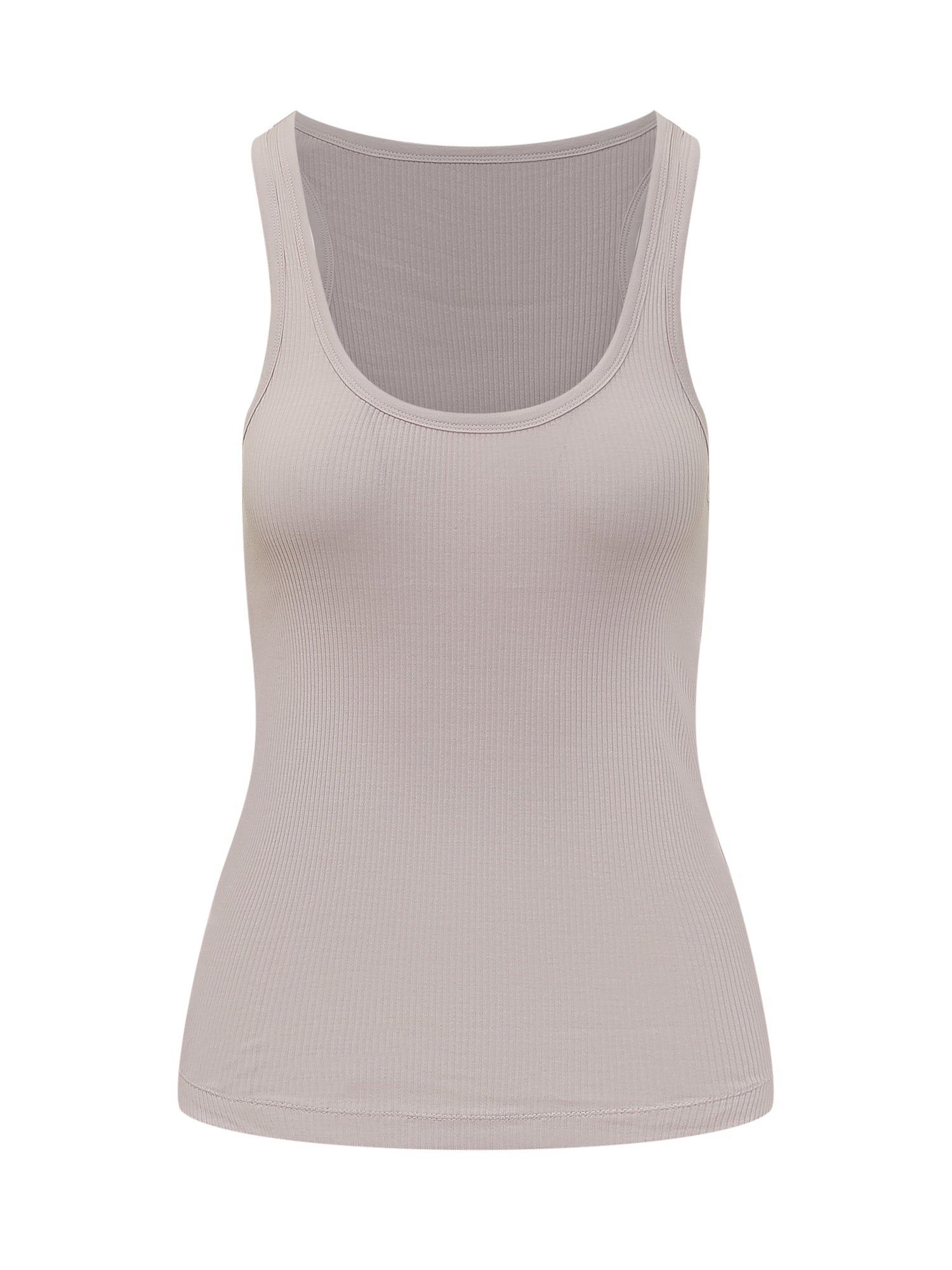 Sleeveless ribbed top with wide neckline and fitted line. Streamlined design enhanced by stretch structure that follows the silhouette. Perfect as a base layer for versatile and contemporary looks.