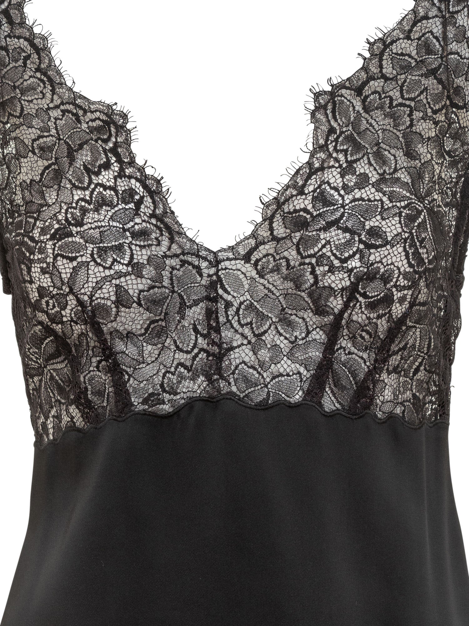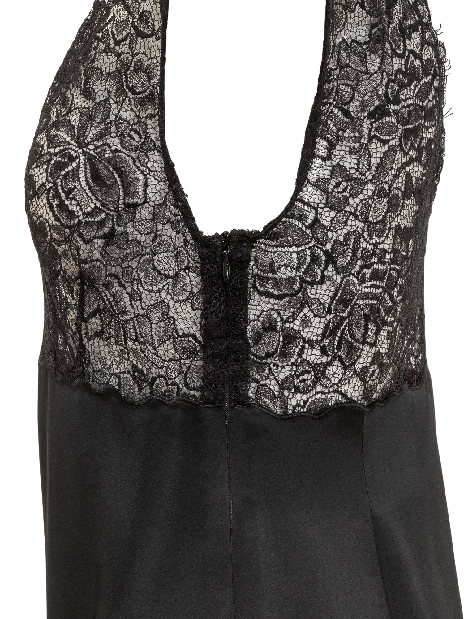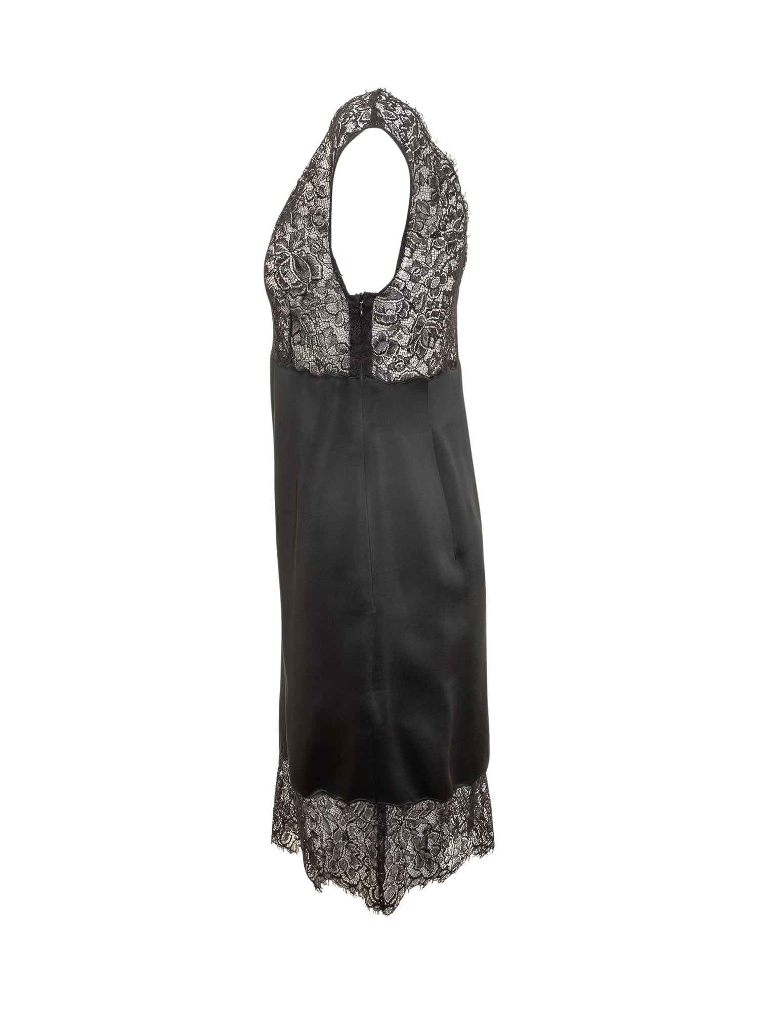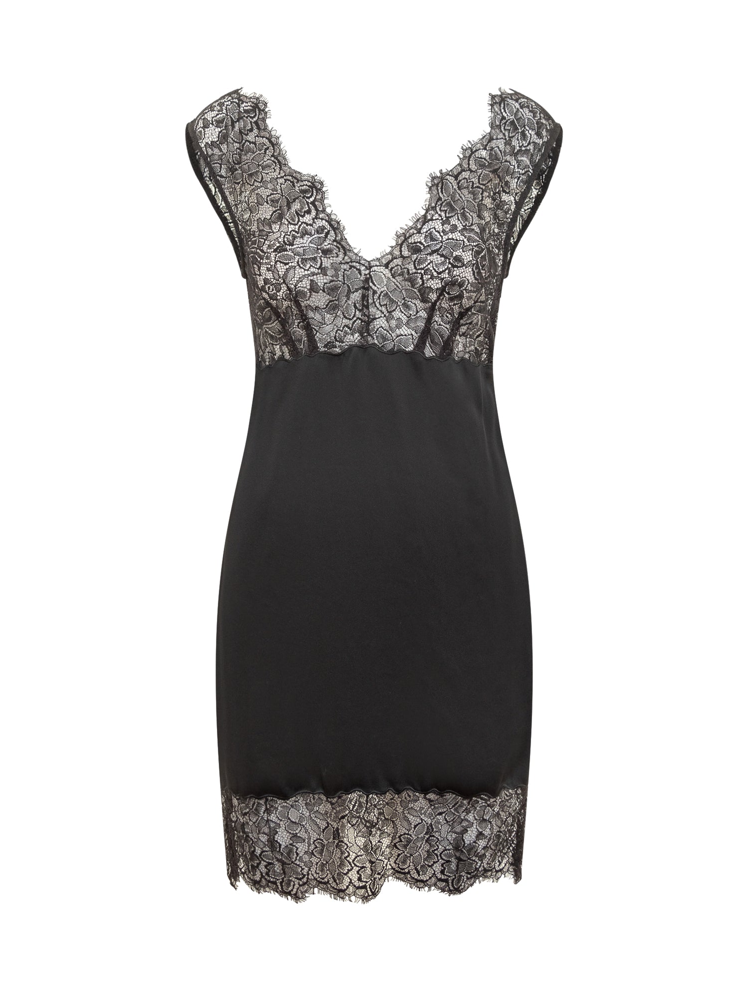 Marella Co-Design short black dress with contrasting floral lace on neckline and hem.