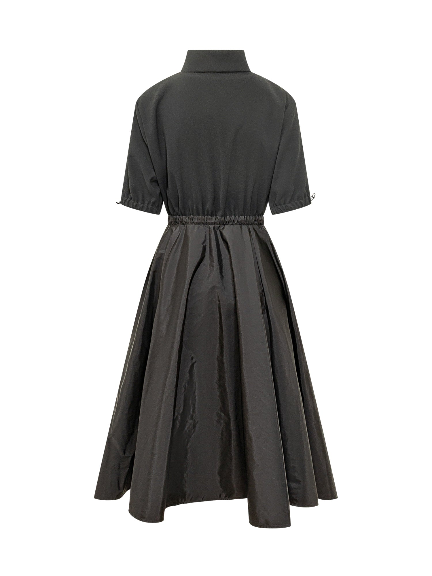 This midi dress features a clean, contemporary design with a front zip closure and a feminine, versatile silhouette.