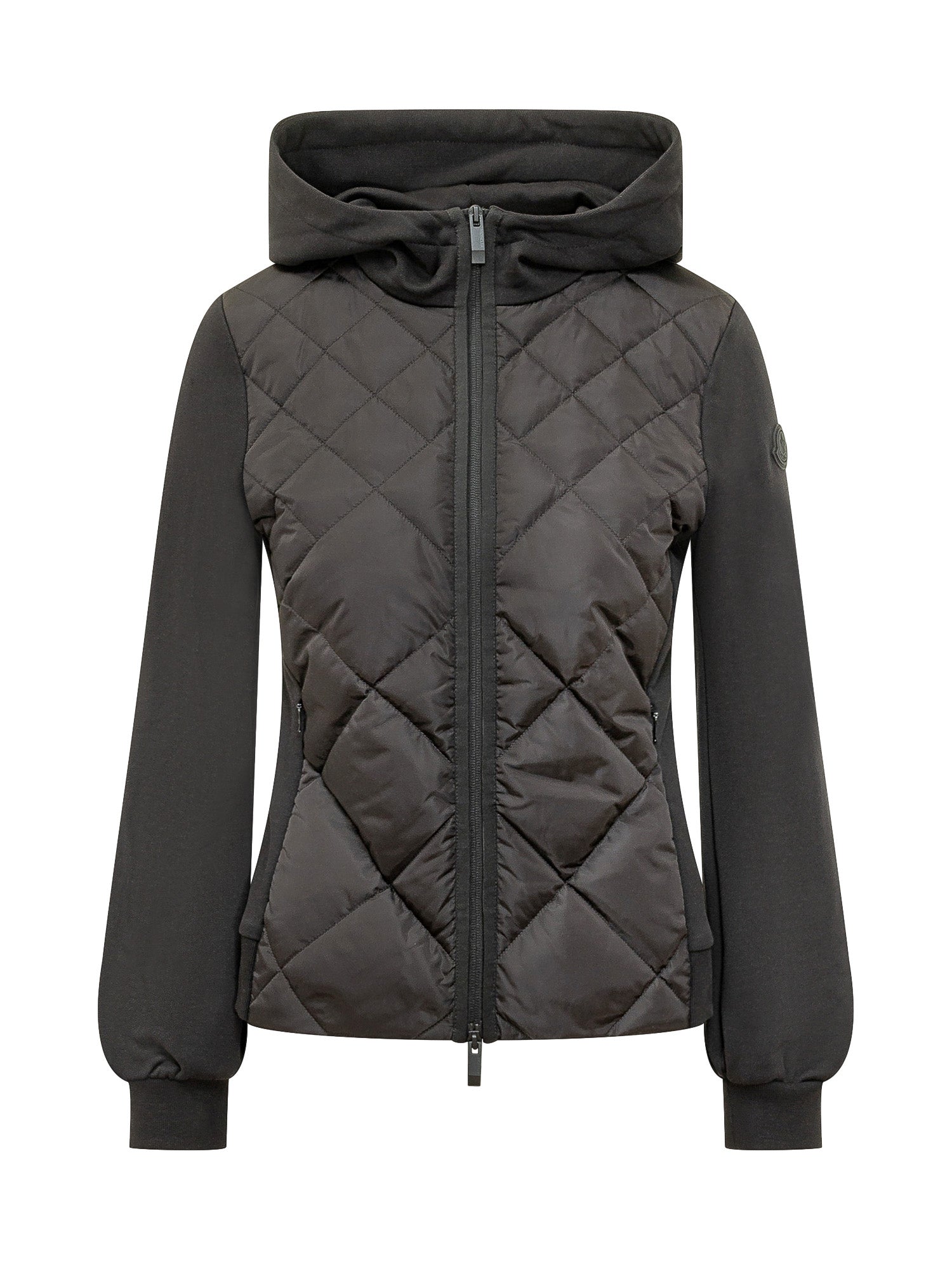 Zip-up hoodie with hood, featuring a padded diamond-quilted front panel and smooth fabric sleeves for added comfort. Finished with zipped side pockets, ribbed cuffs, and a tonal logo patch on the sleeve.