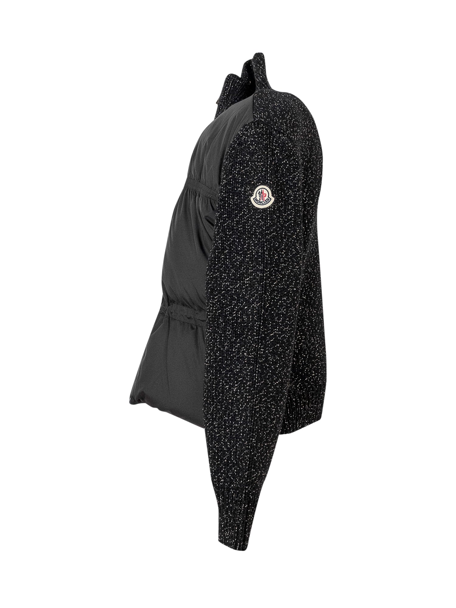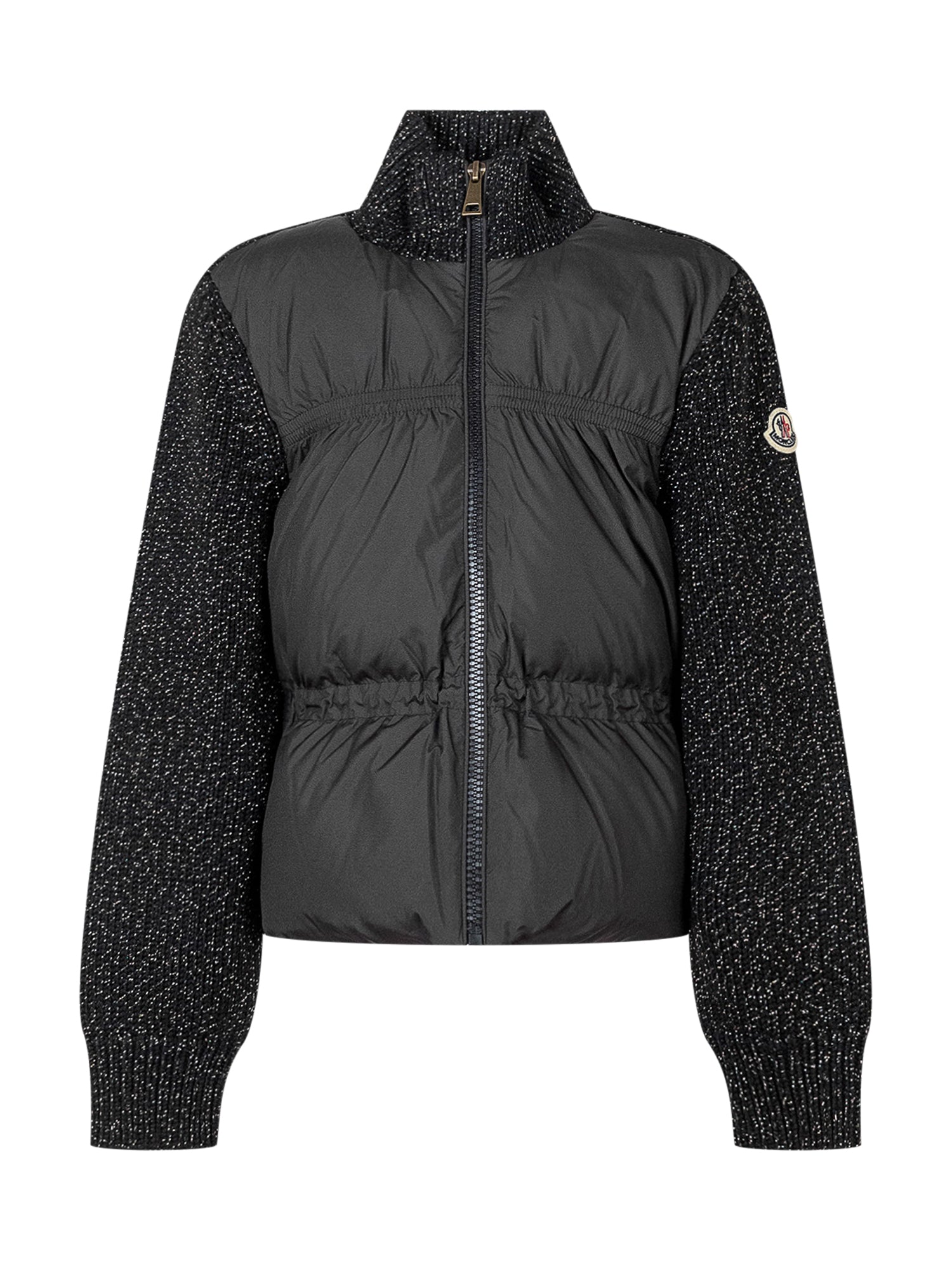 Moncler Enfant jacket in technical fabric with lurex knit sleeves and zip closure. Elasticated waist and logo patch on the sleeve.