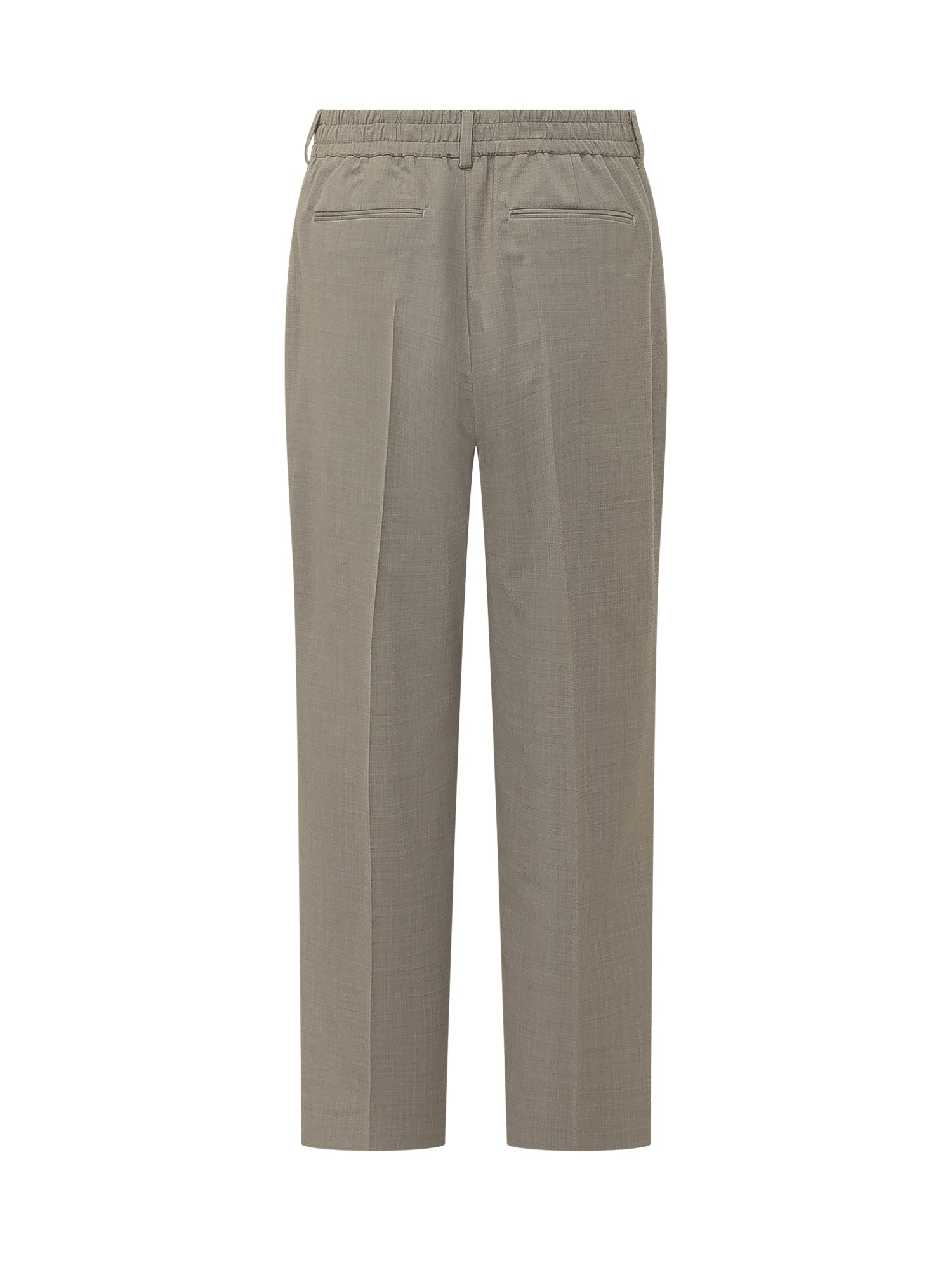 Pants with front closure and belt loops. Straight line with pressed crease for an elegant contemporary style.