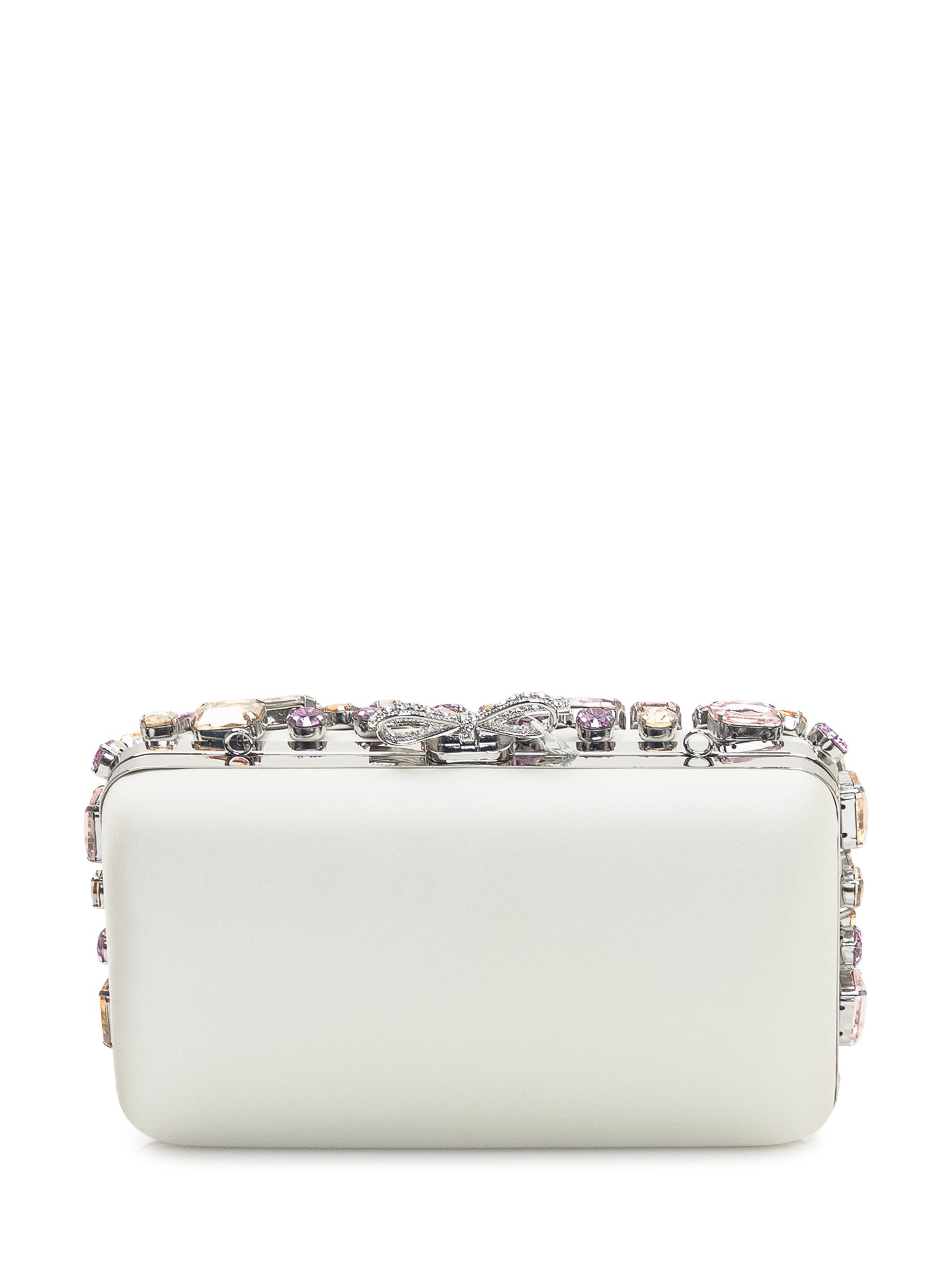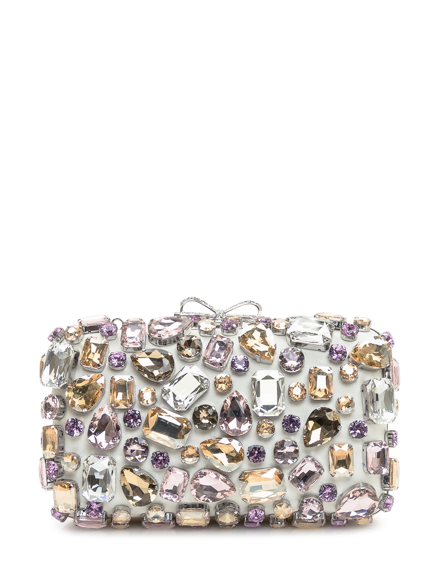 Rigid clutch embellished with multishape crystals, perfect for evening looks. Its compact design and jewel closure add brightness and elegance to any special occasion.