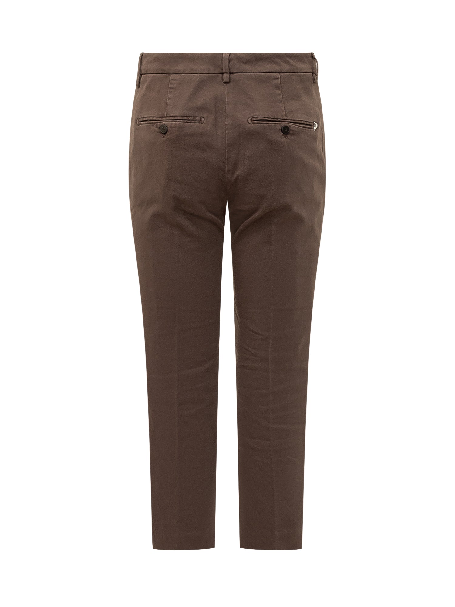 Dondup trousers in stretch cotton with cropped cut and mid-rise waist. Detailed with decorative front button fastening.