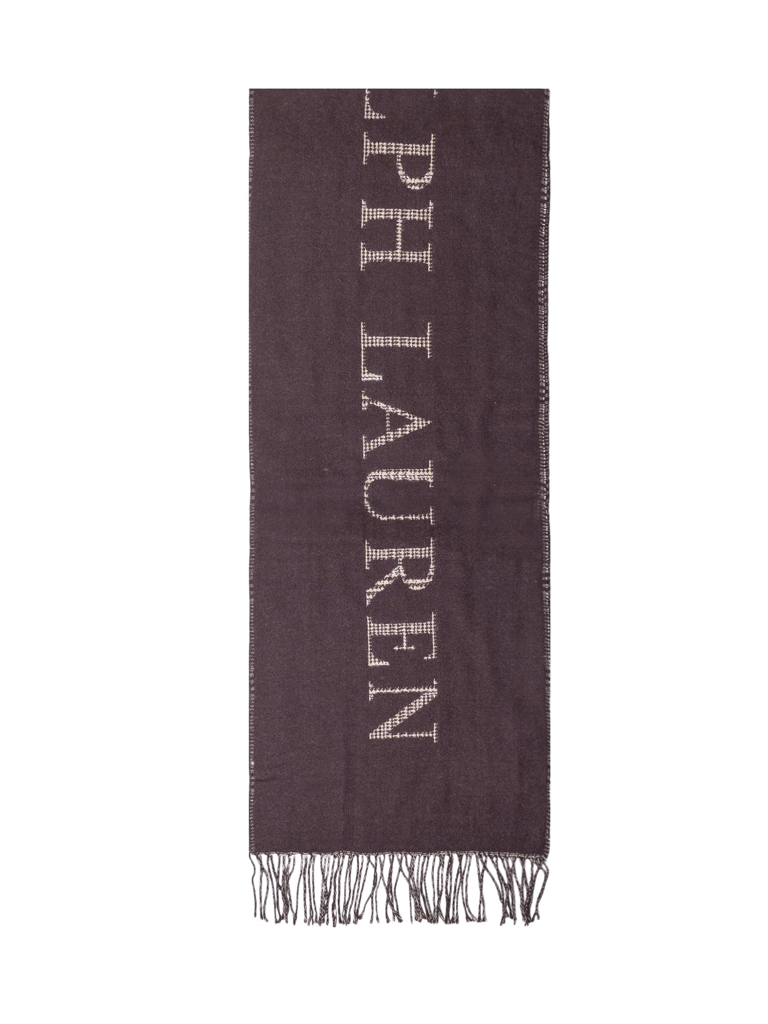 Soft scarf featuring a contrasting woven logo and fringed edges.
