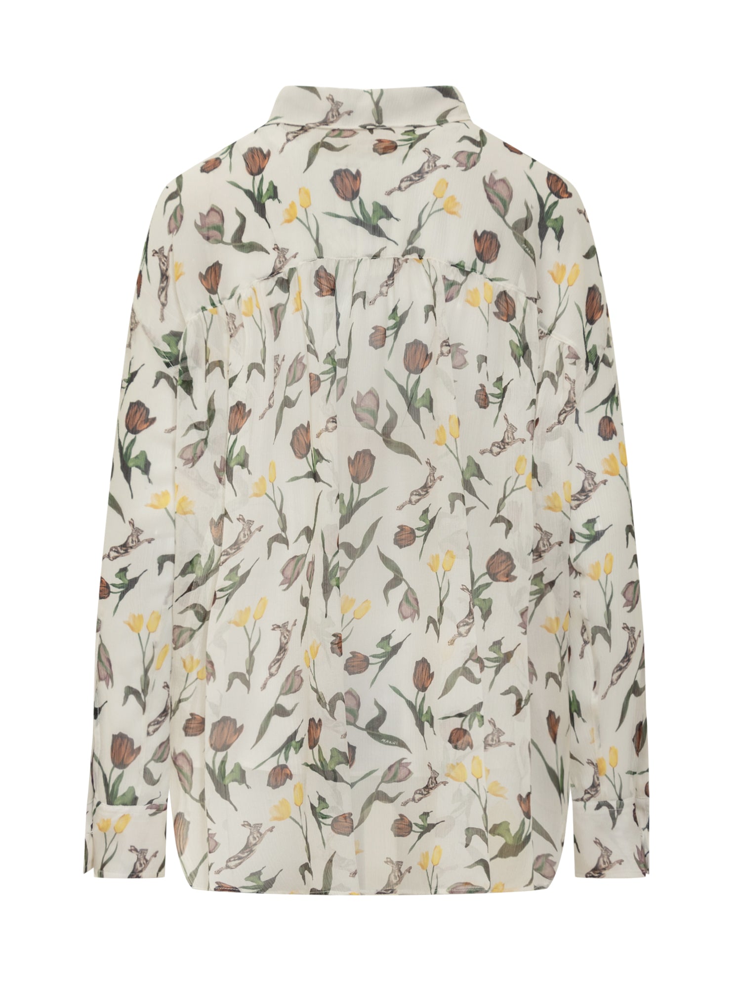 Marni women's shirt with floral print on a light background. Made from lightweight fabric, it features a classic collar and button closure.