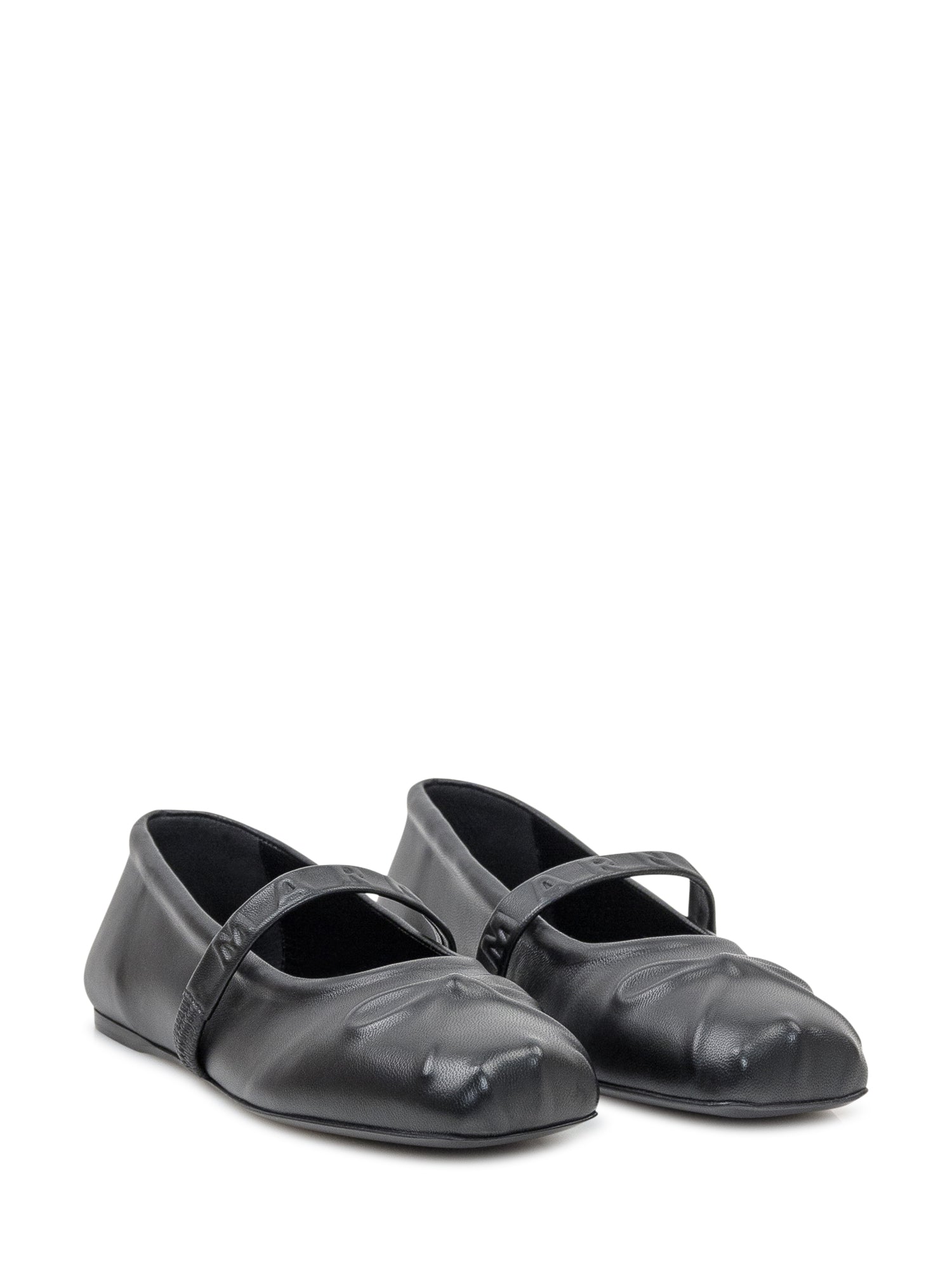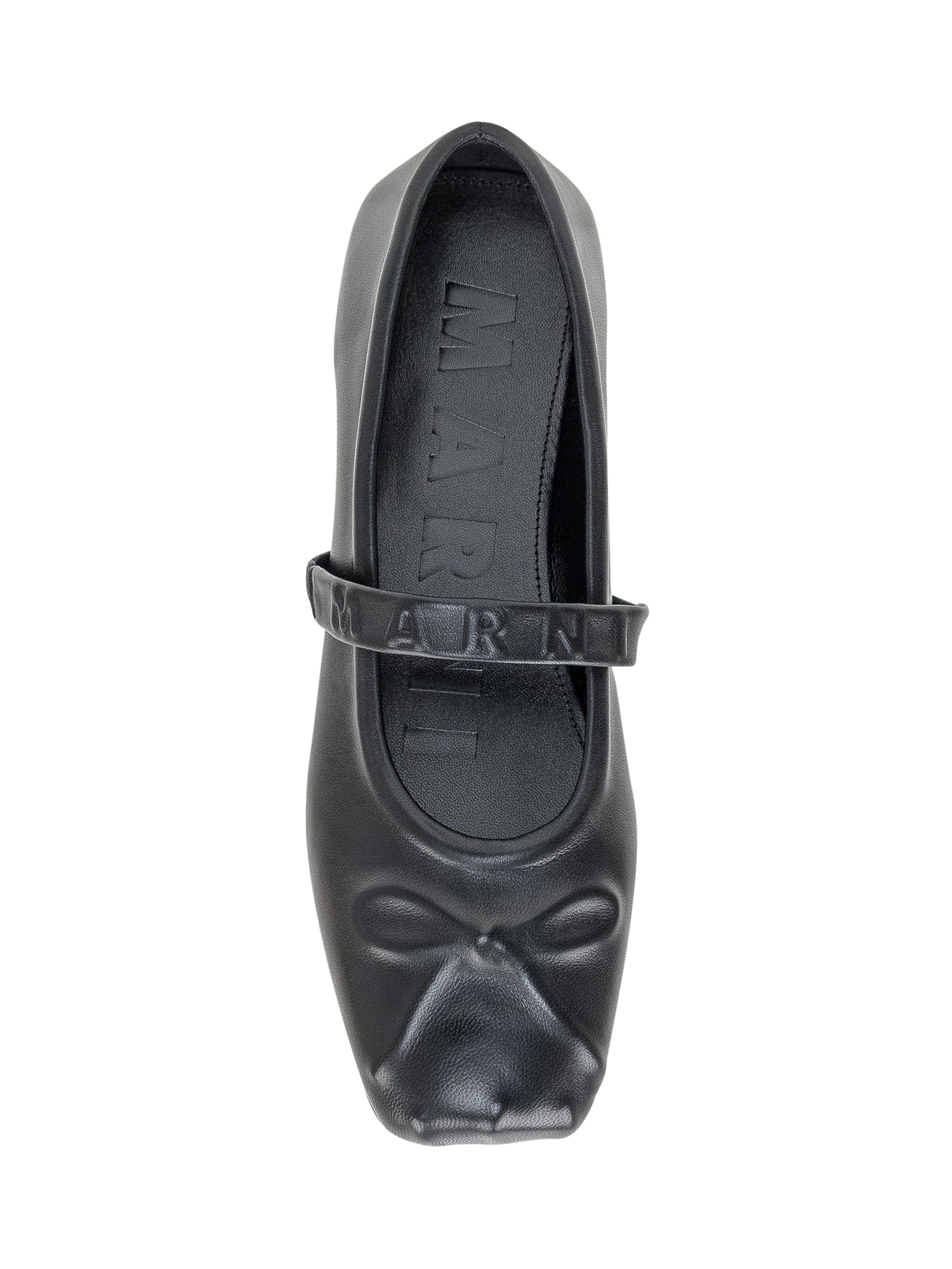 Black ballerina in leather. Ribbed bow. Strap with elastic.