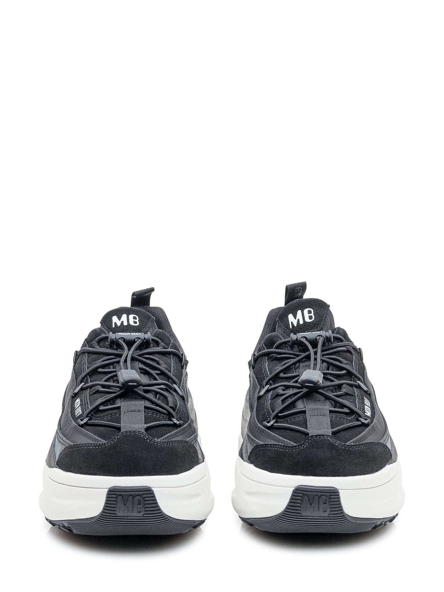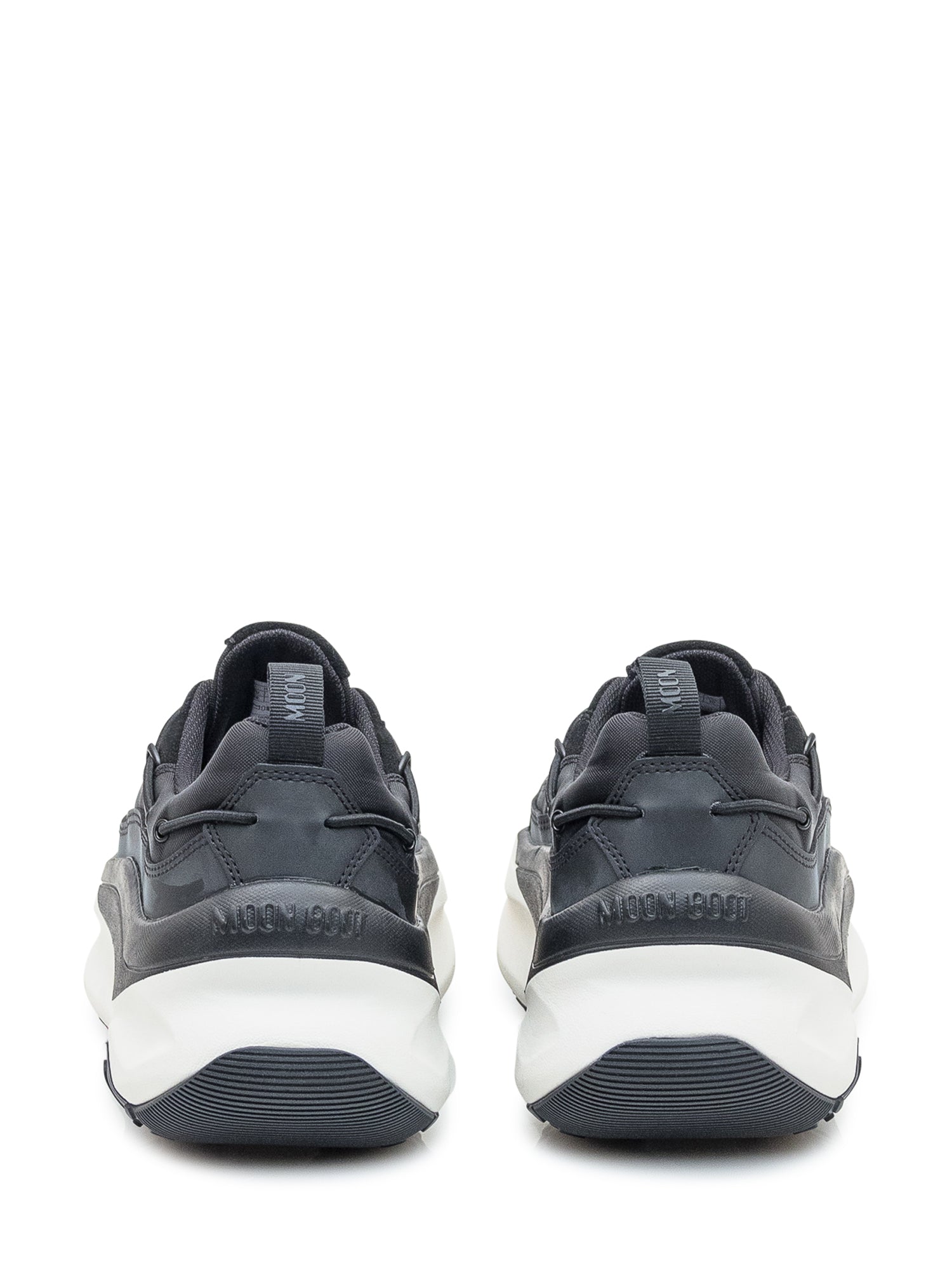 Moon Boot Moon247 Xlace sneakers in black technical fabric with two-tone chunky sole. Futuristic design, elastic lace fastening.