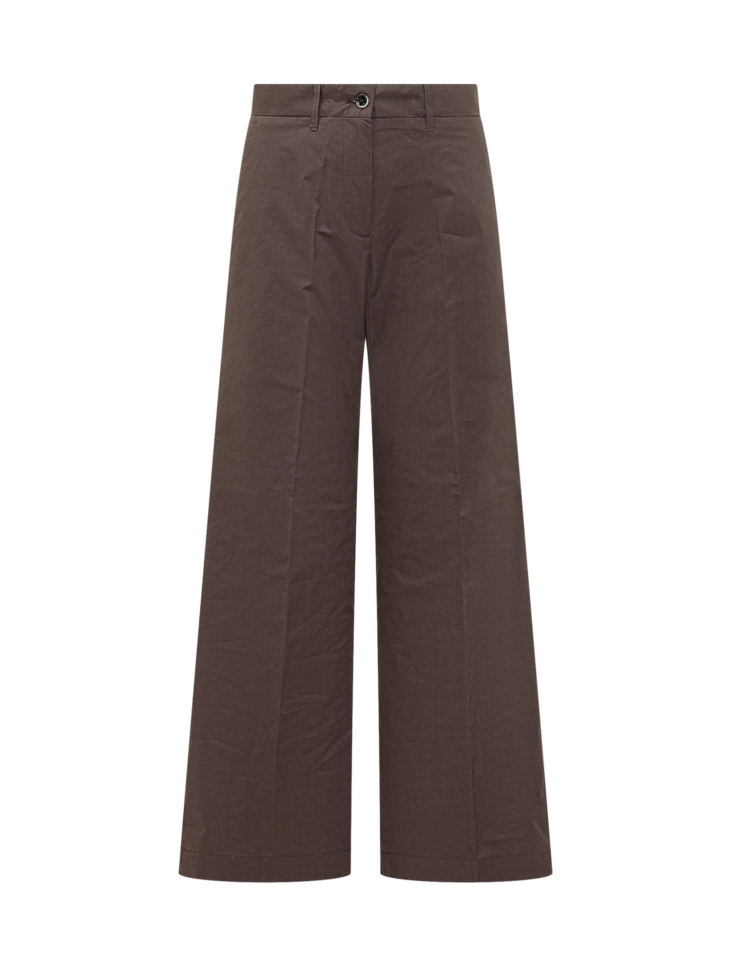 Wide leg pants with front closure and belt loops. Wide leg and broad hem for a bold contemporary silhouette.