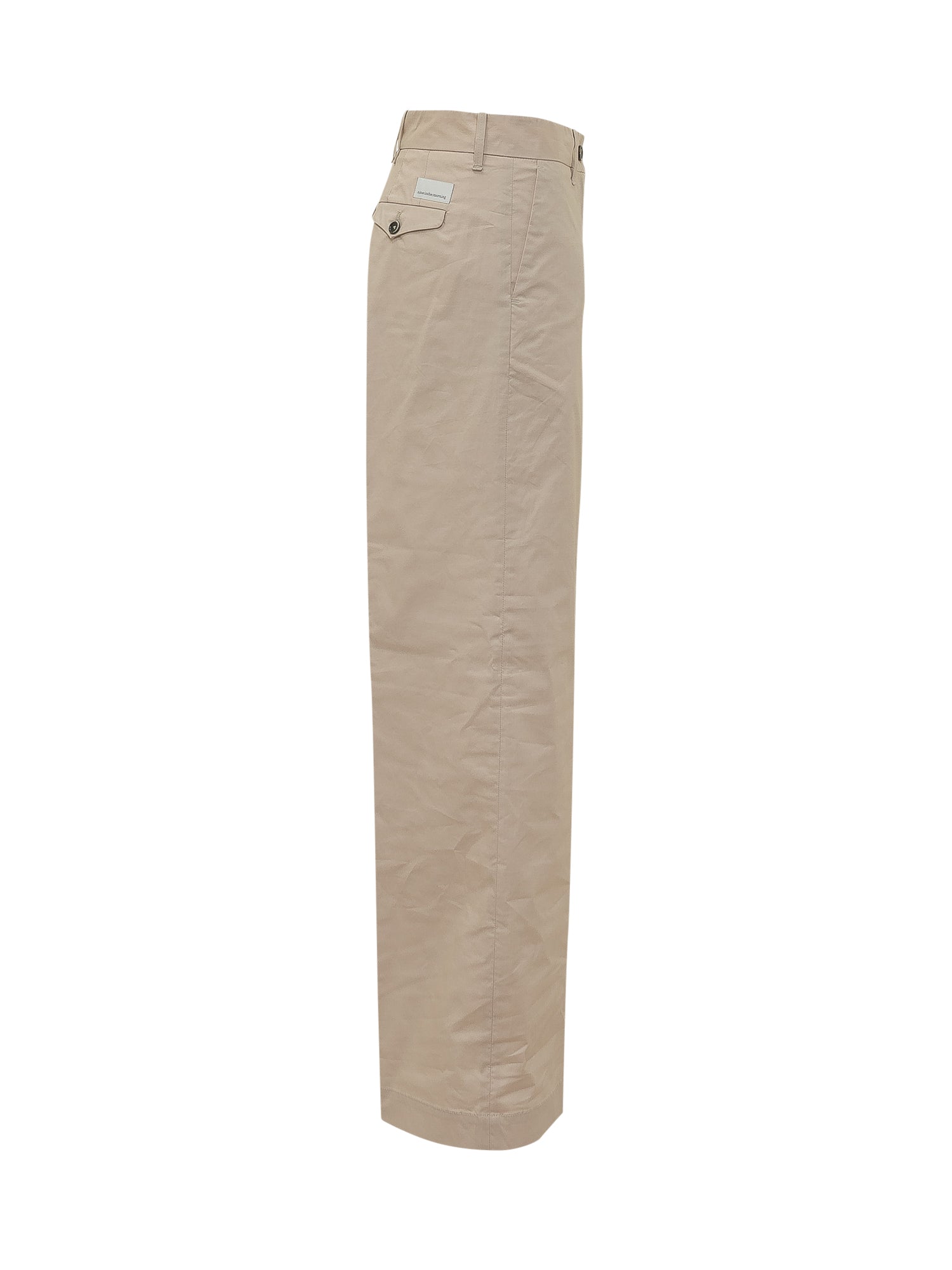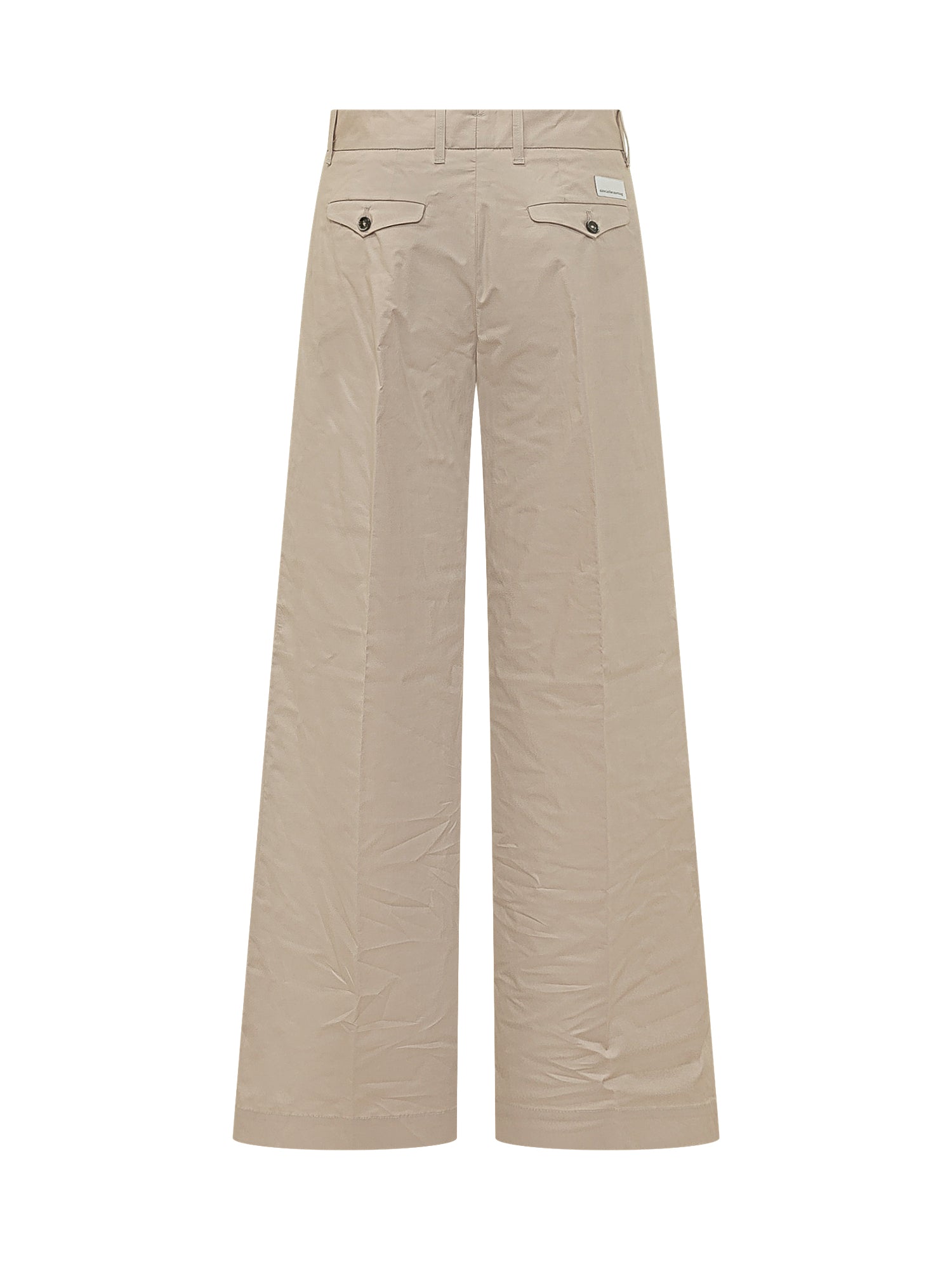 Wide leg pants with front closure and belt loops. Wide leg and broad hem for a bold contemporary silhouette.
