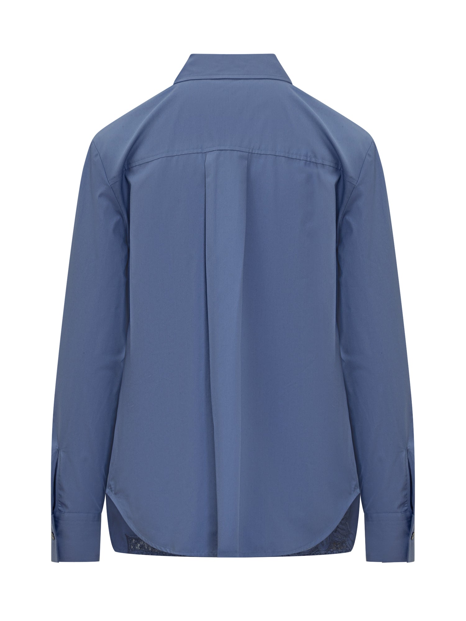 Blue shirt in cotton. Classic collar. Embroidery on the chest. Closure with buttons.