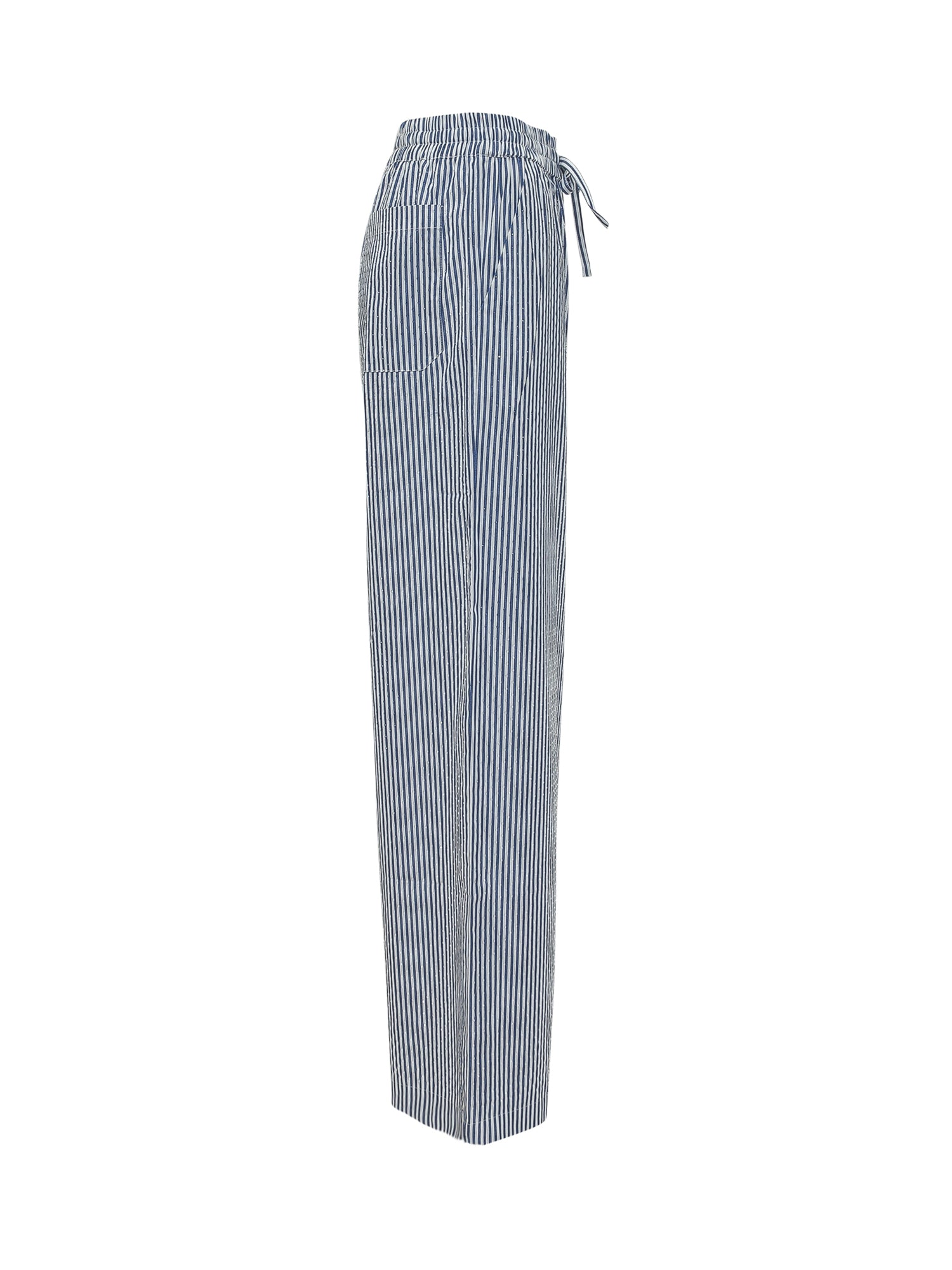 Womens wide leg pants, elasticated waist with drawstring, comfortable lightweight fit, striped pattern.
