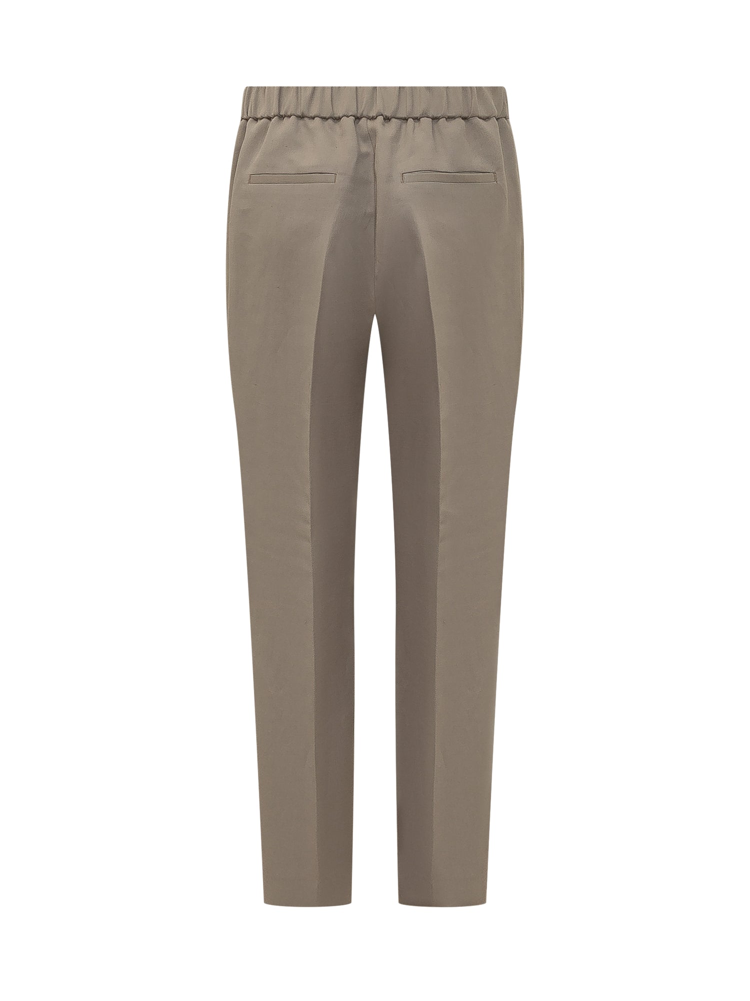 Long pants with elastic waistband and straight leg. Front crease detail that enhances the silhouette. Clean lines and contemporary design, ideal for formal and everyday looks.