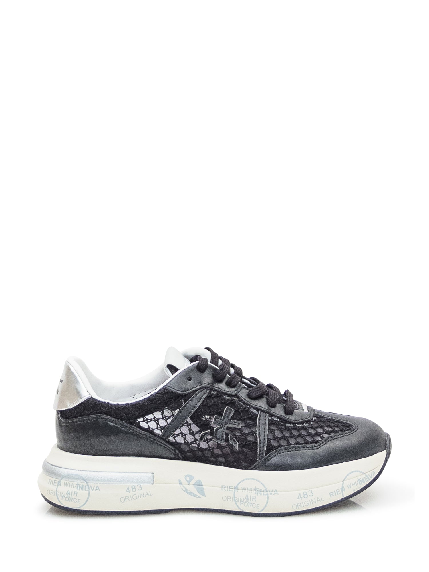 Black shoe in fabric with perforated texture and details in soft suede. Closure with laces.