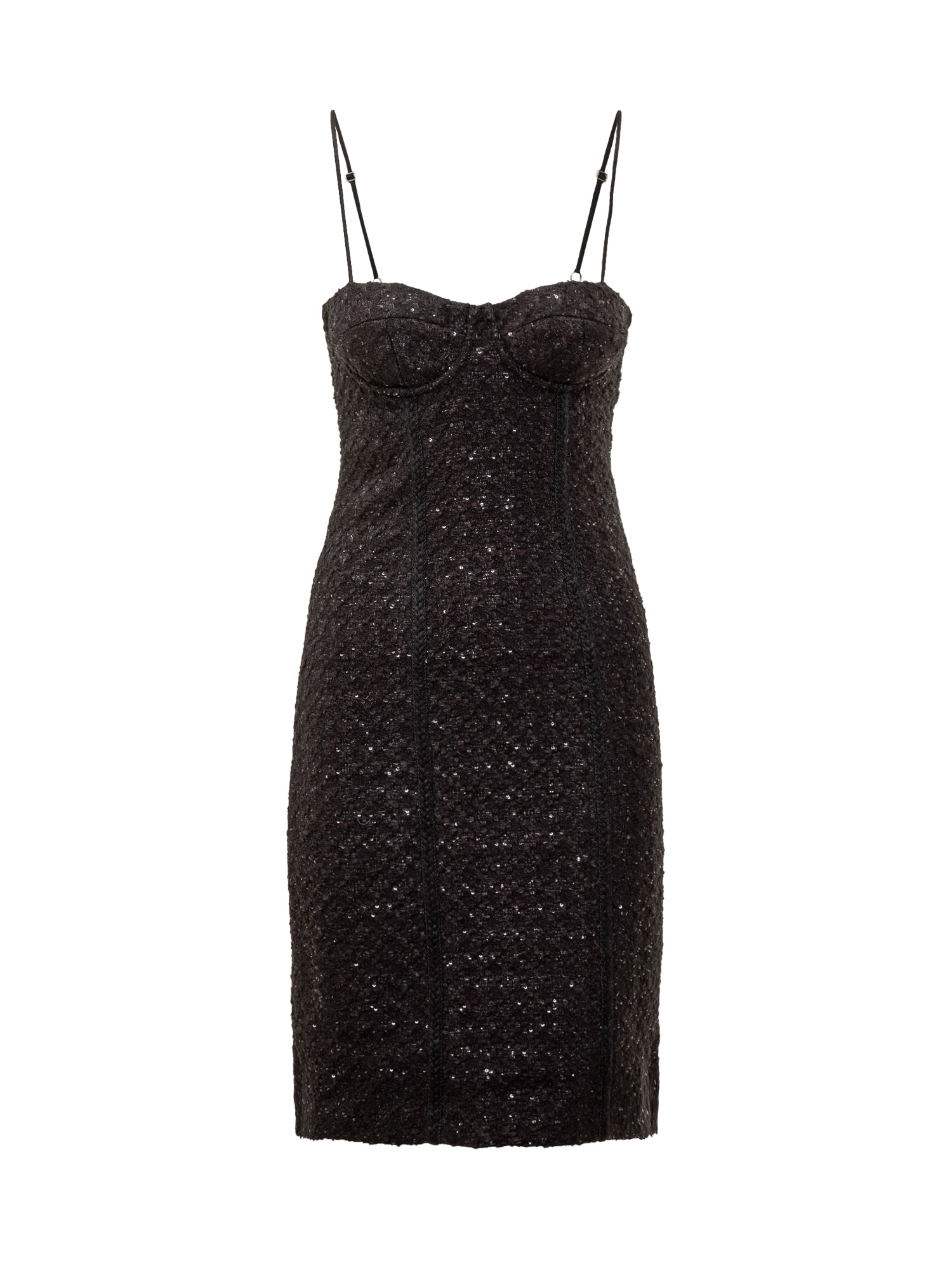 Black short dress. Adjustable straps. Loop workmanship. Zip closure back.