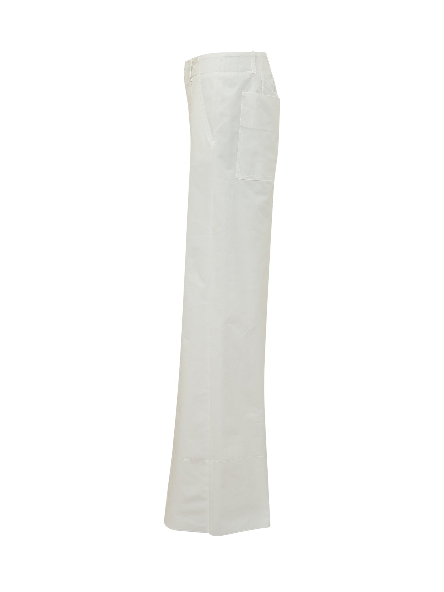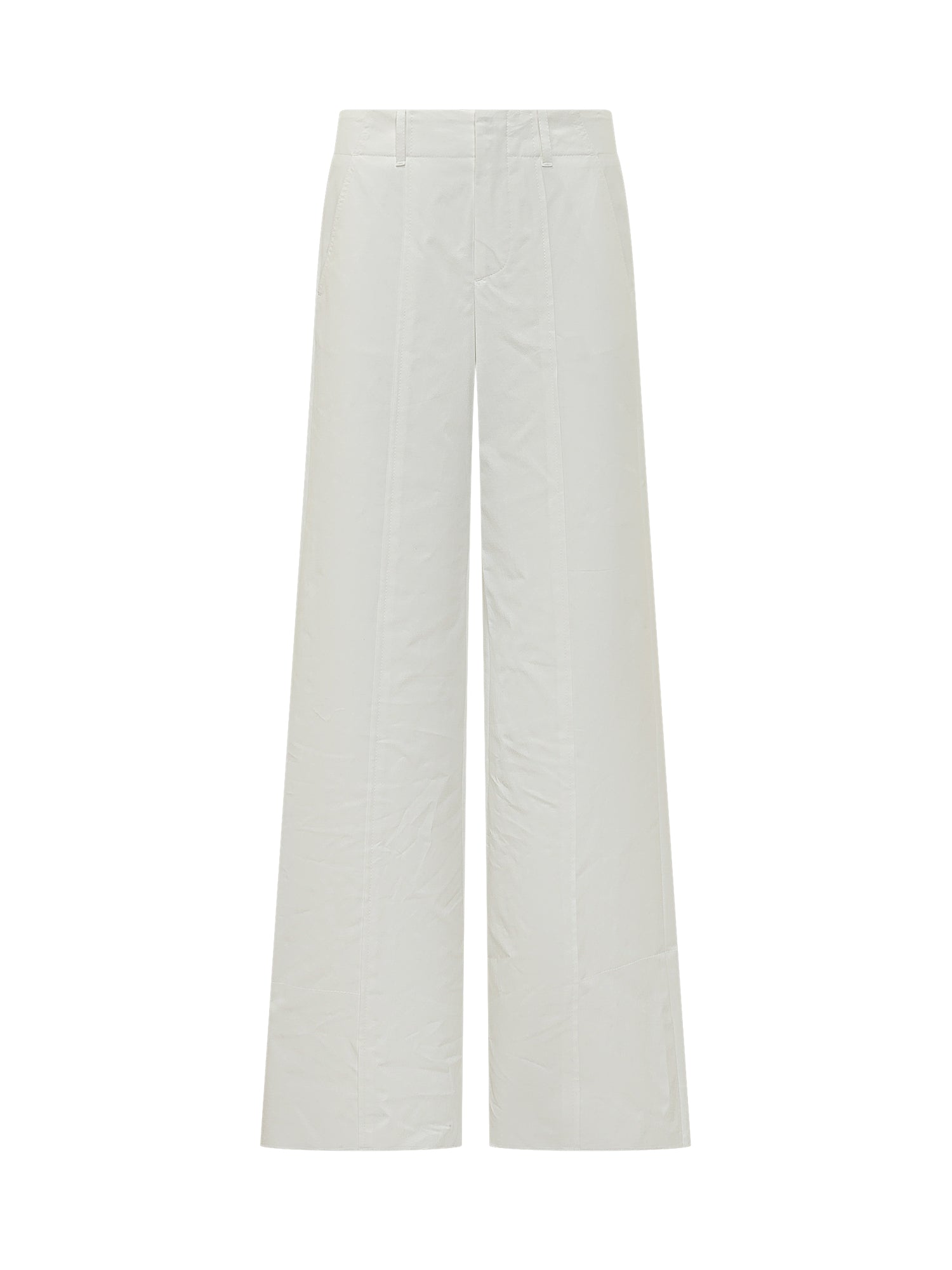 Pants with front closure and belt loops. Wide leg and fluid line for an elegant modern style.