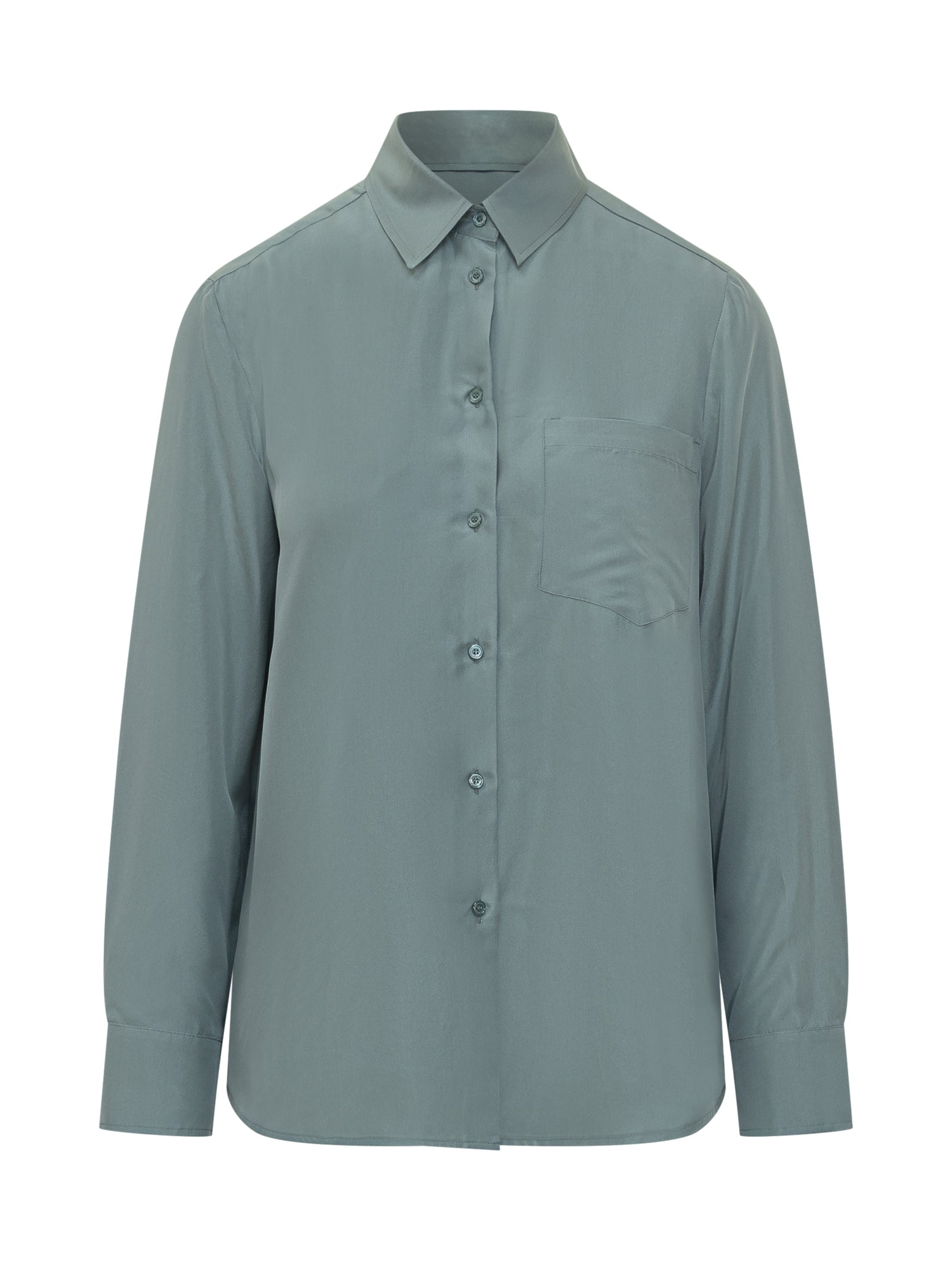 Weekend Max Mara pure silk shirt in green with pointed collar and chest pocket.