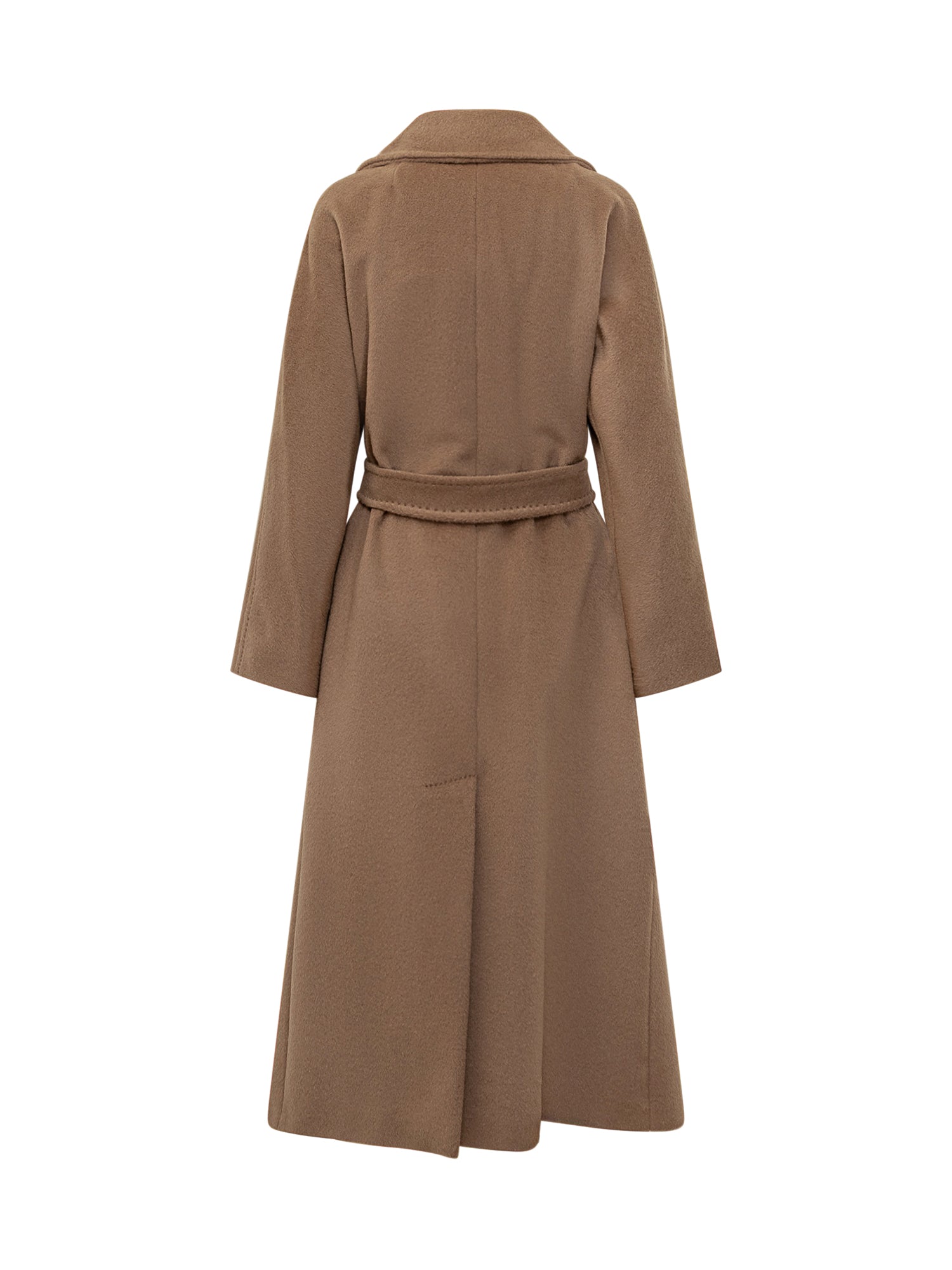 Weekend Max Mara camel wool coat with wide lapels and matching belt.