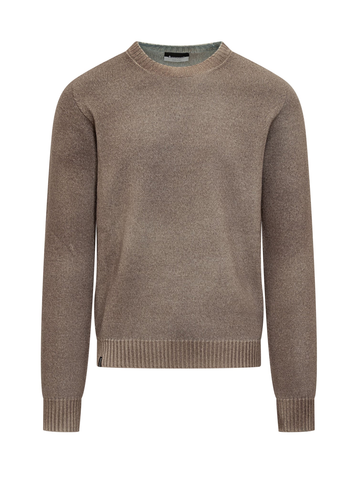 Arovescio brown knit crewneck sweater with ribbed trims.