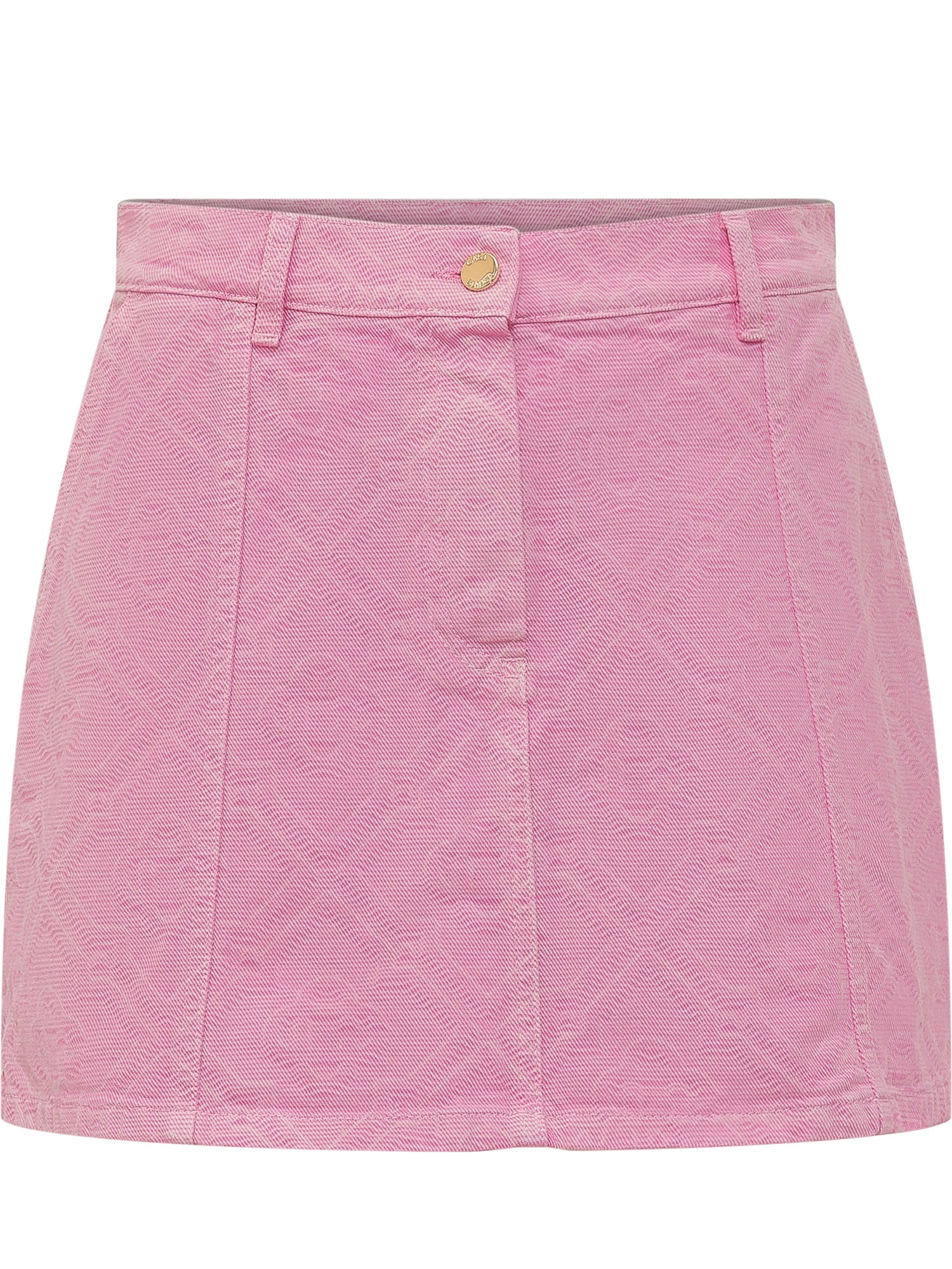 Mini skirt with high waist, button and zip closure, belt loops and slightly flared shape, structured front seams and clean finish.