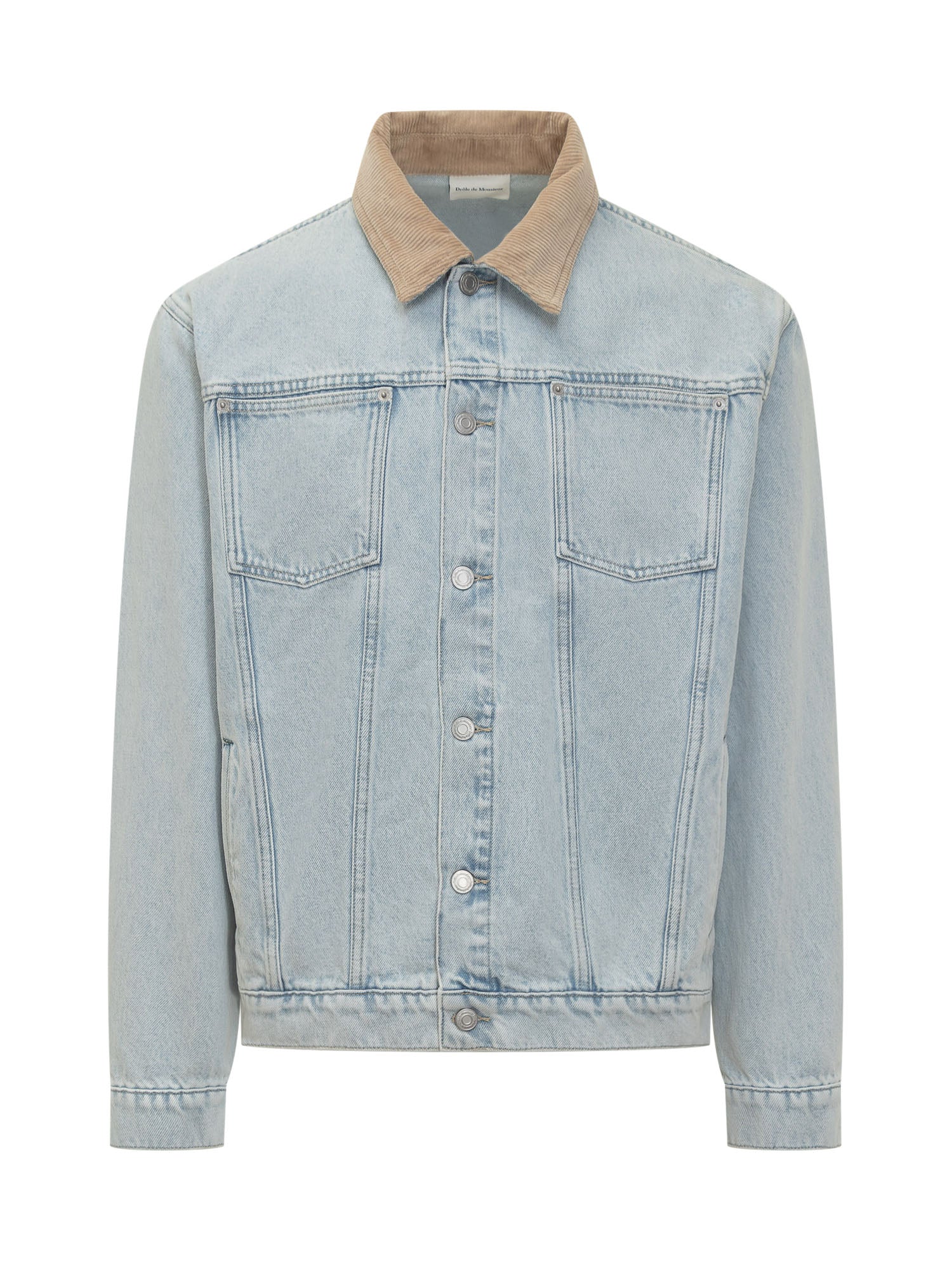 Denim jacket featuring a corduroy contrast collar, button closure and front pockets.