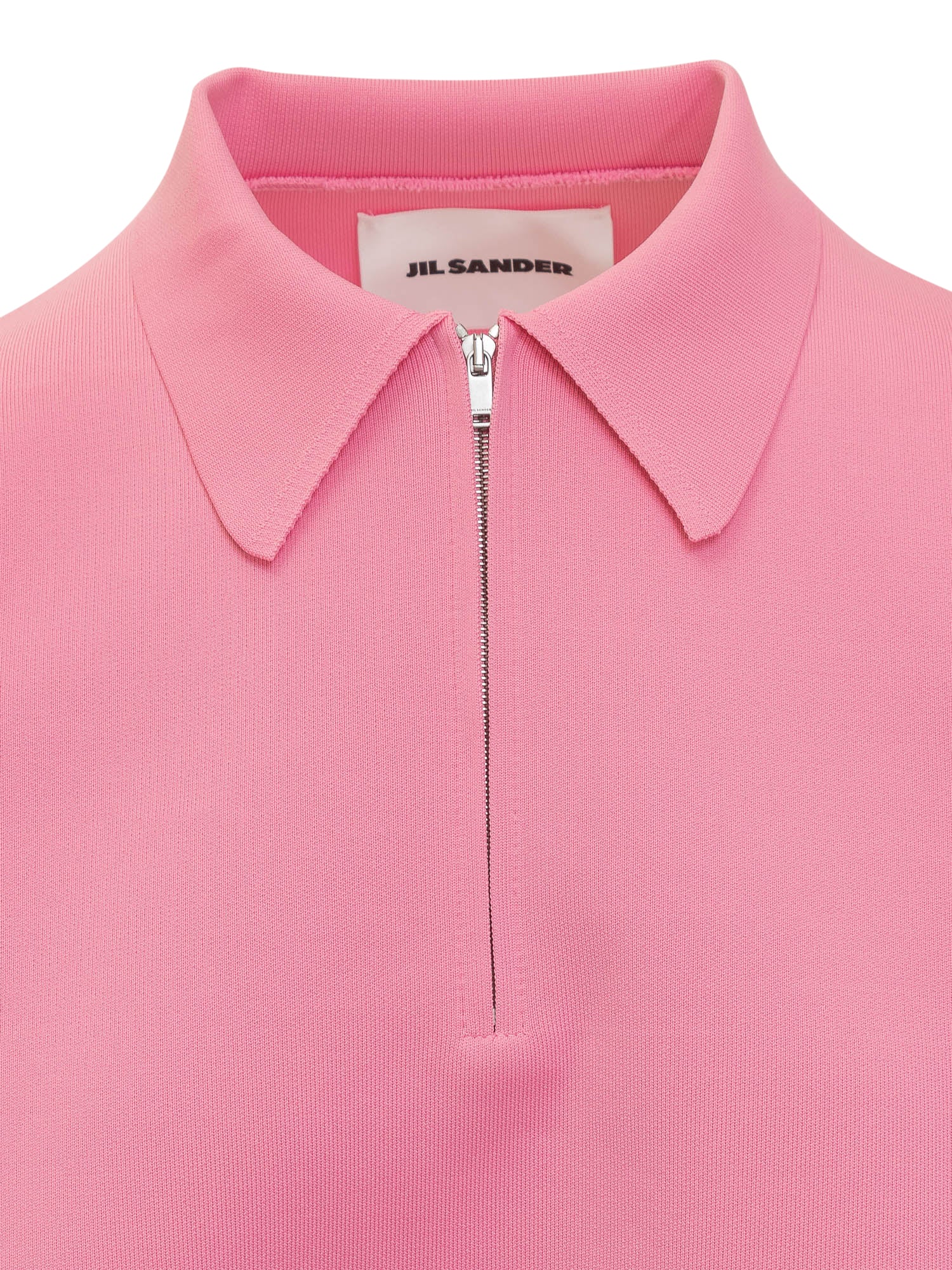 Short-sleeved polo shirt. Classic collar. Zip fastening.