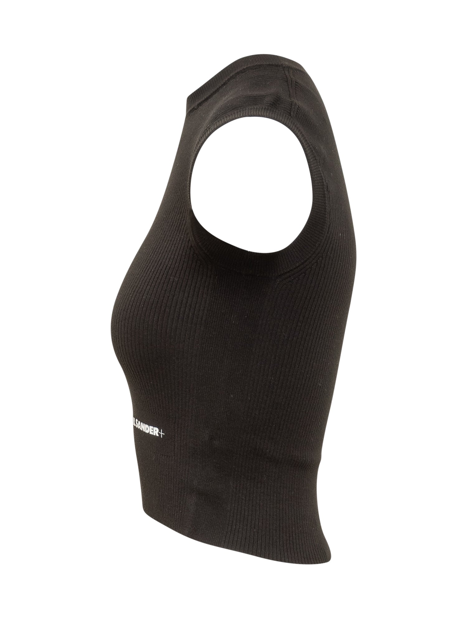 Cotton ribbed sleeveless top. Crew neck. Ribbed hems. Embroidered logo on front.