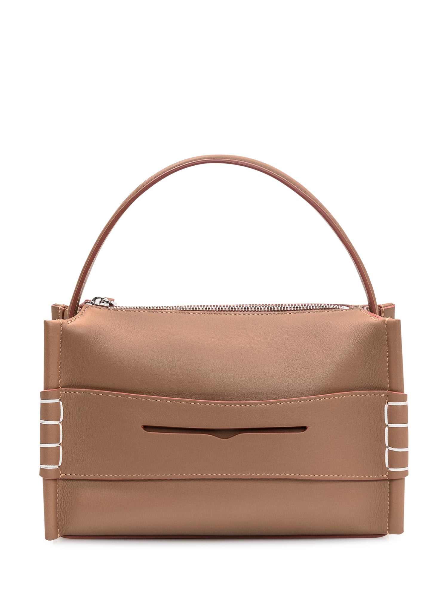 Compact top handle bag with a clean, minimalist design. Crafted from smooth leather and finished with a zip closure.Size: 8.66x5.91x3.15