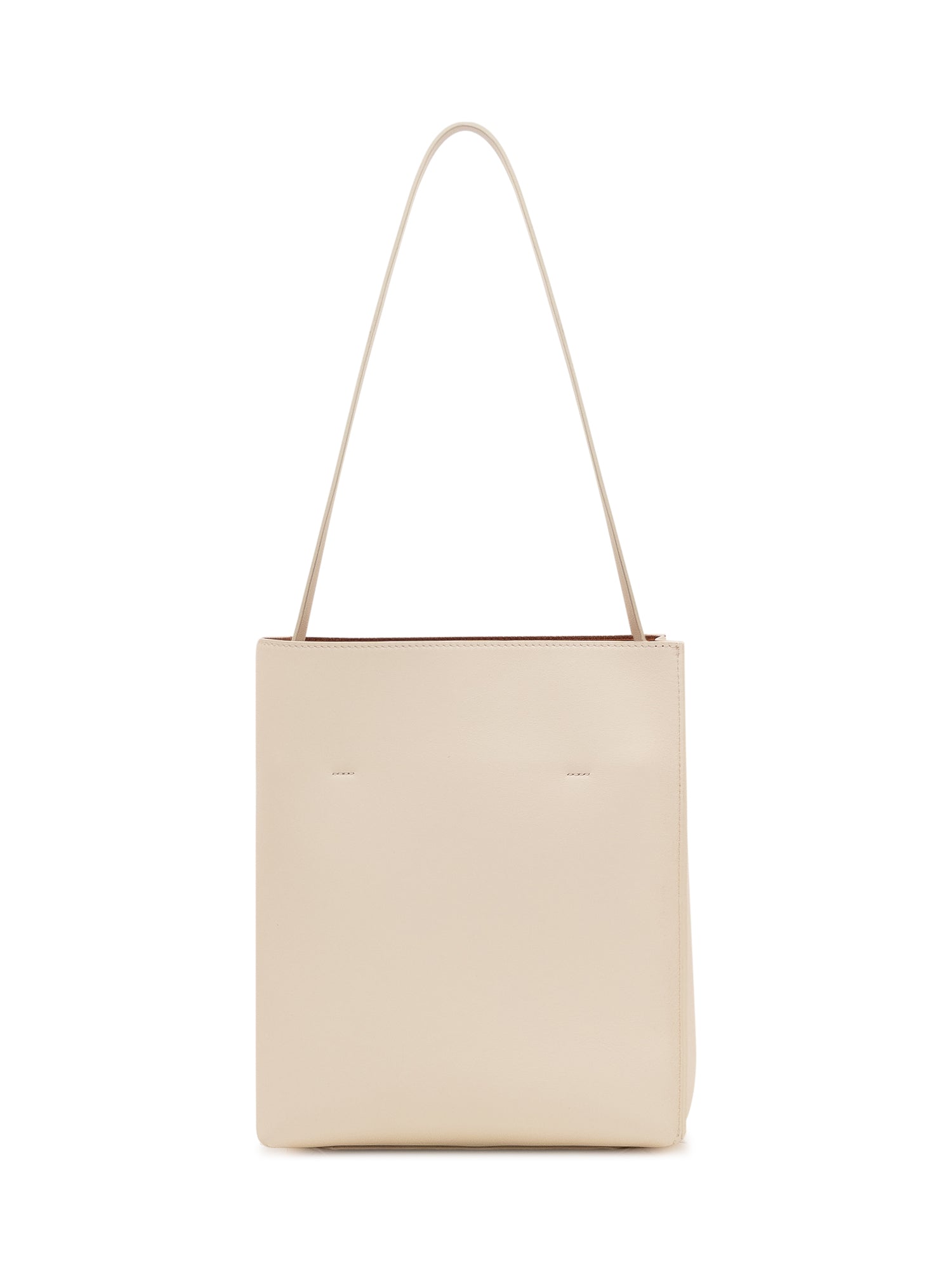 Rectangular structured shoulder bag with single slim strap. Compact design featuring applied logo on the front. Refined and functional model designed to complete everyday and elevated looks.