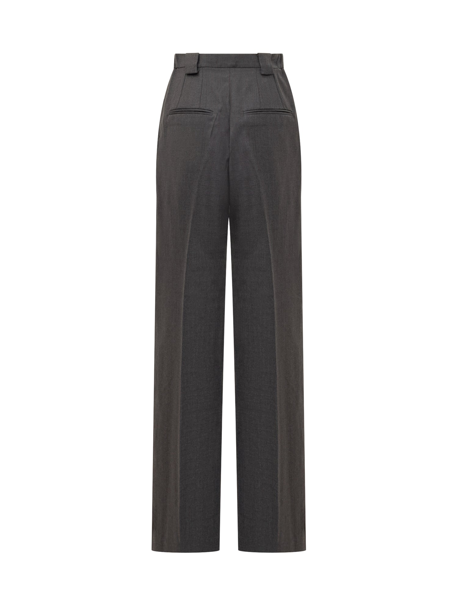 Mom s Pants trousers in grey wool with high waist and front pleats. Wide-leg fit and tailored cut.