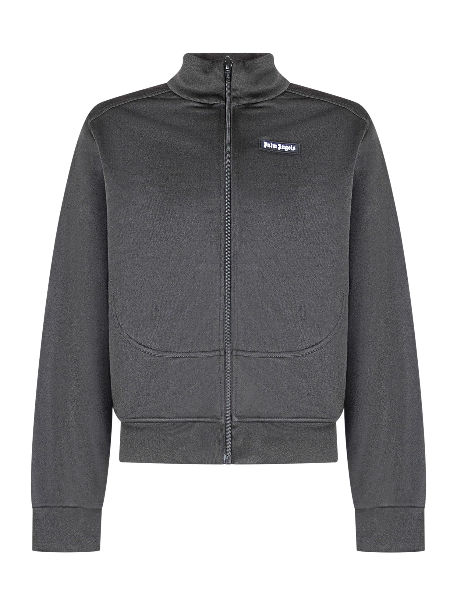 Palm Angels Kids black technical sweatshirt with zip closure, front logo, and bold gothic back print.
