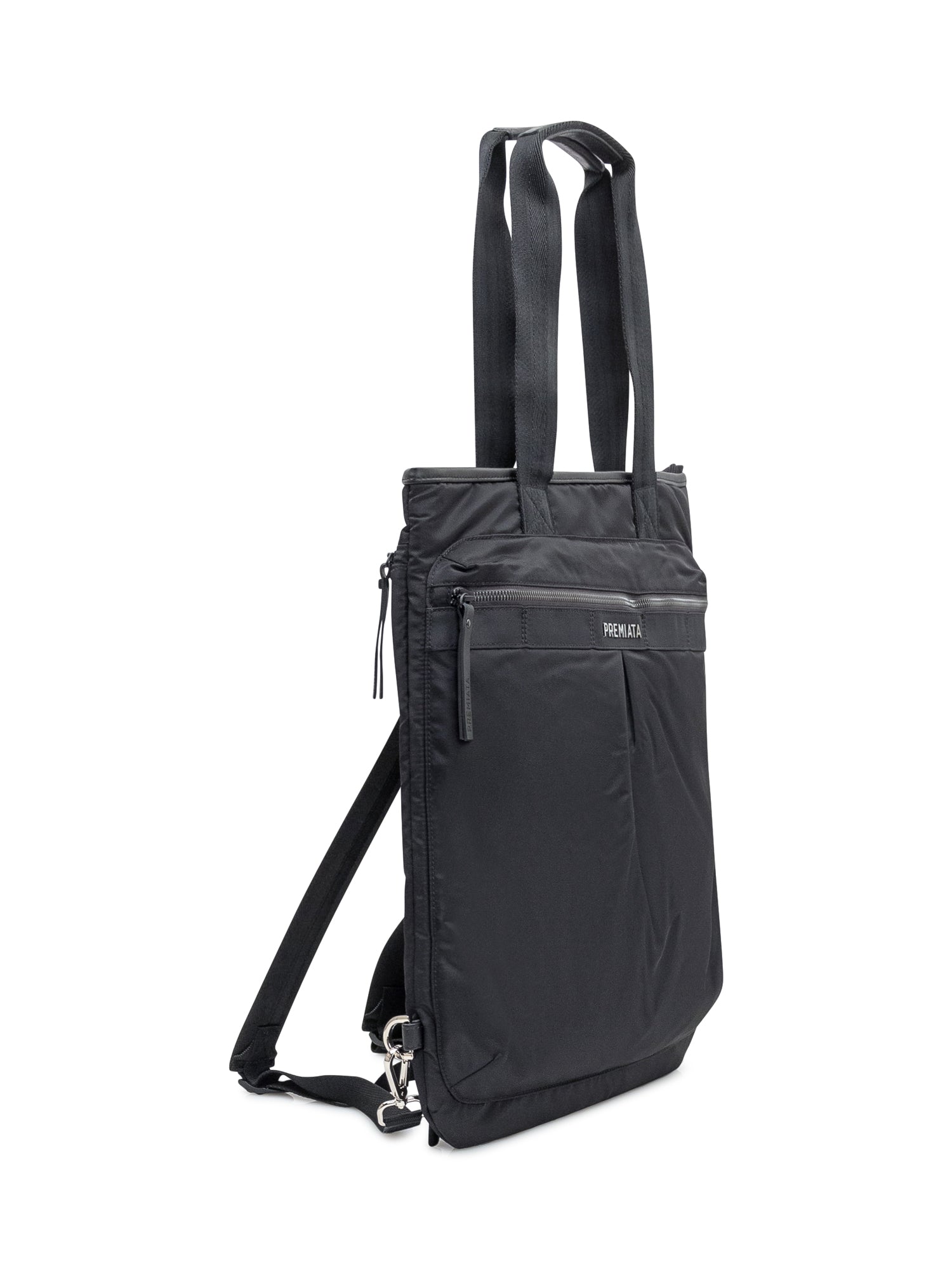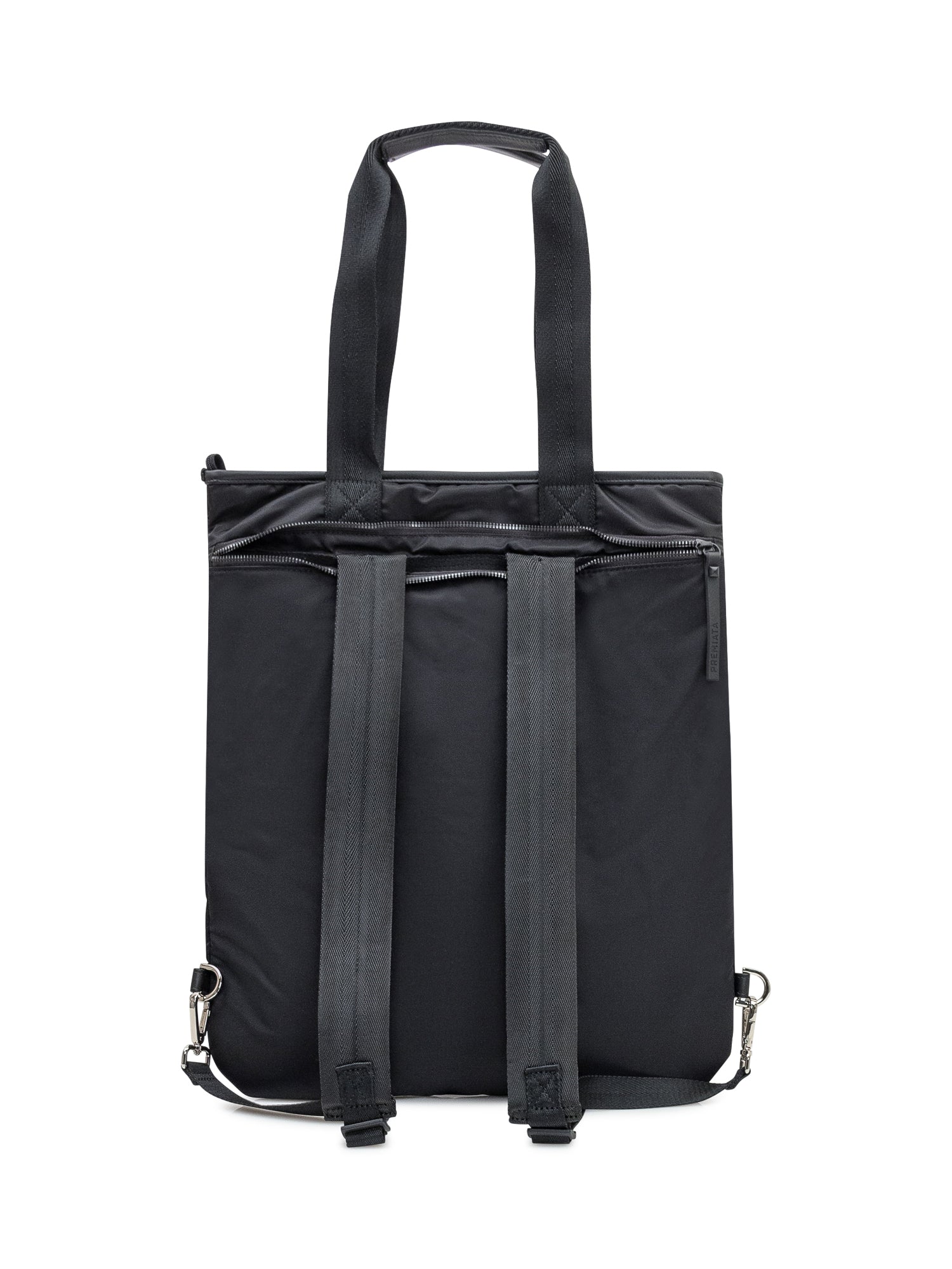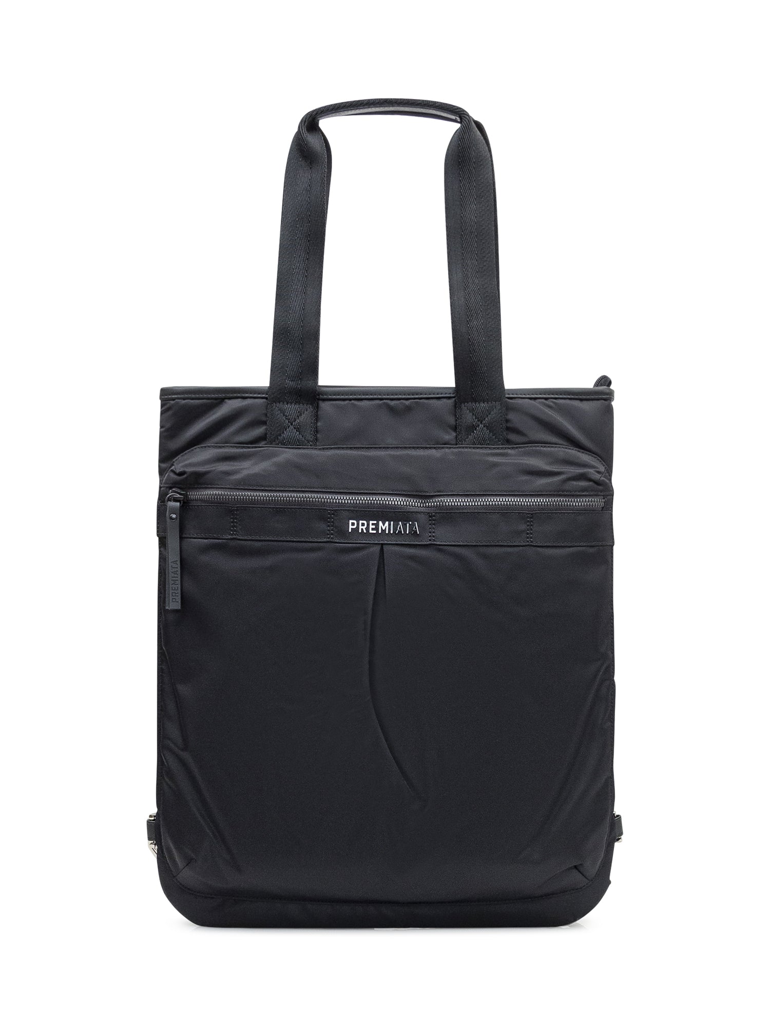 Kimani tote bag by Premiata in black nylon, practical design with double handles, front zip pocket and logo.