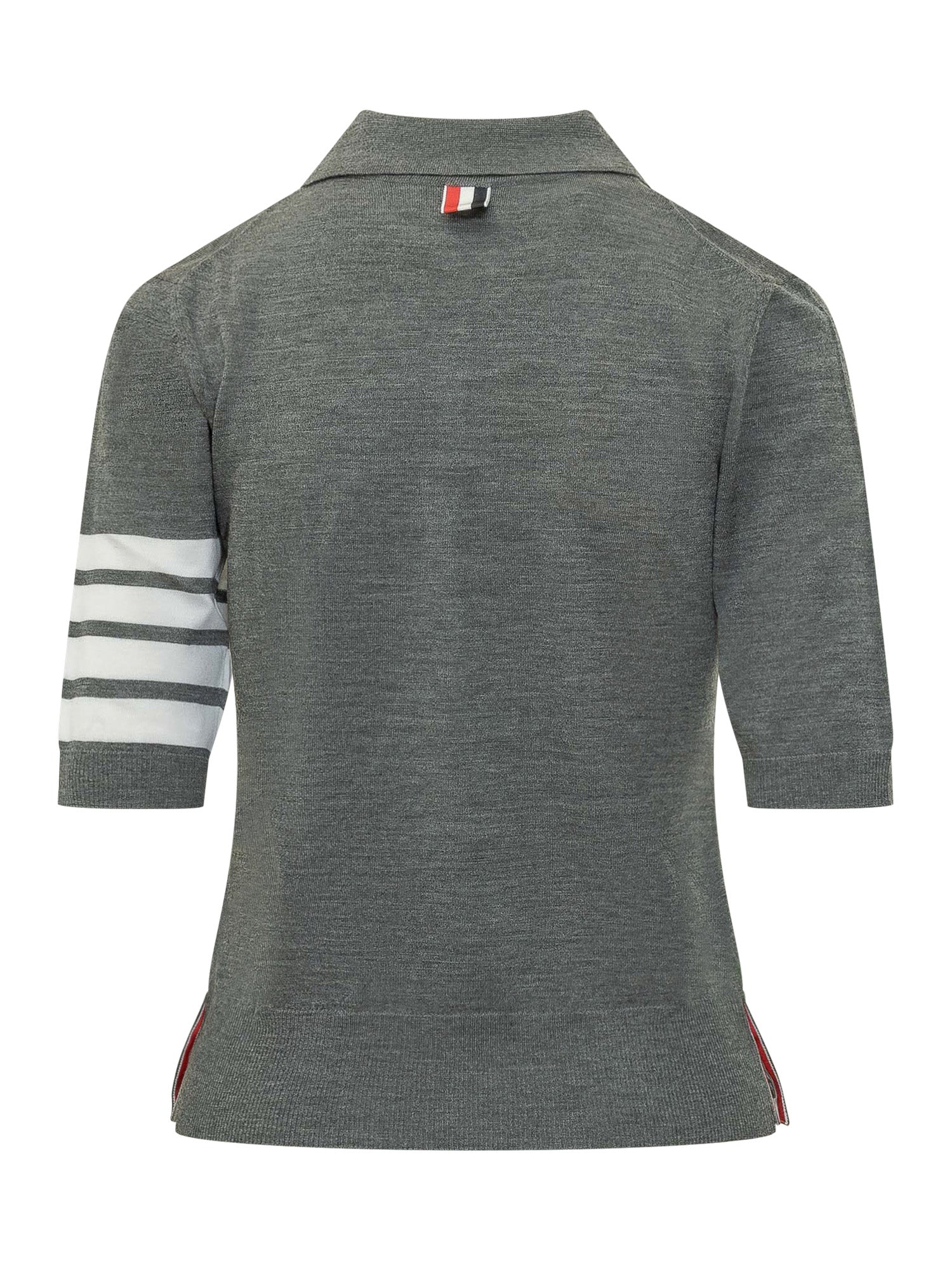 Short-sleeve fine knit polo with a classic collar and front button placket.