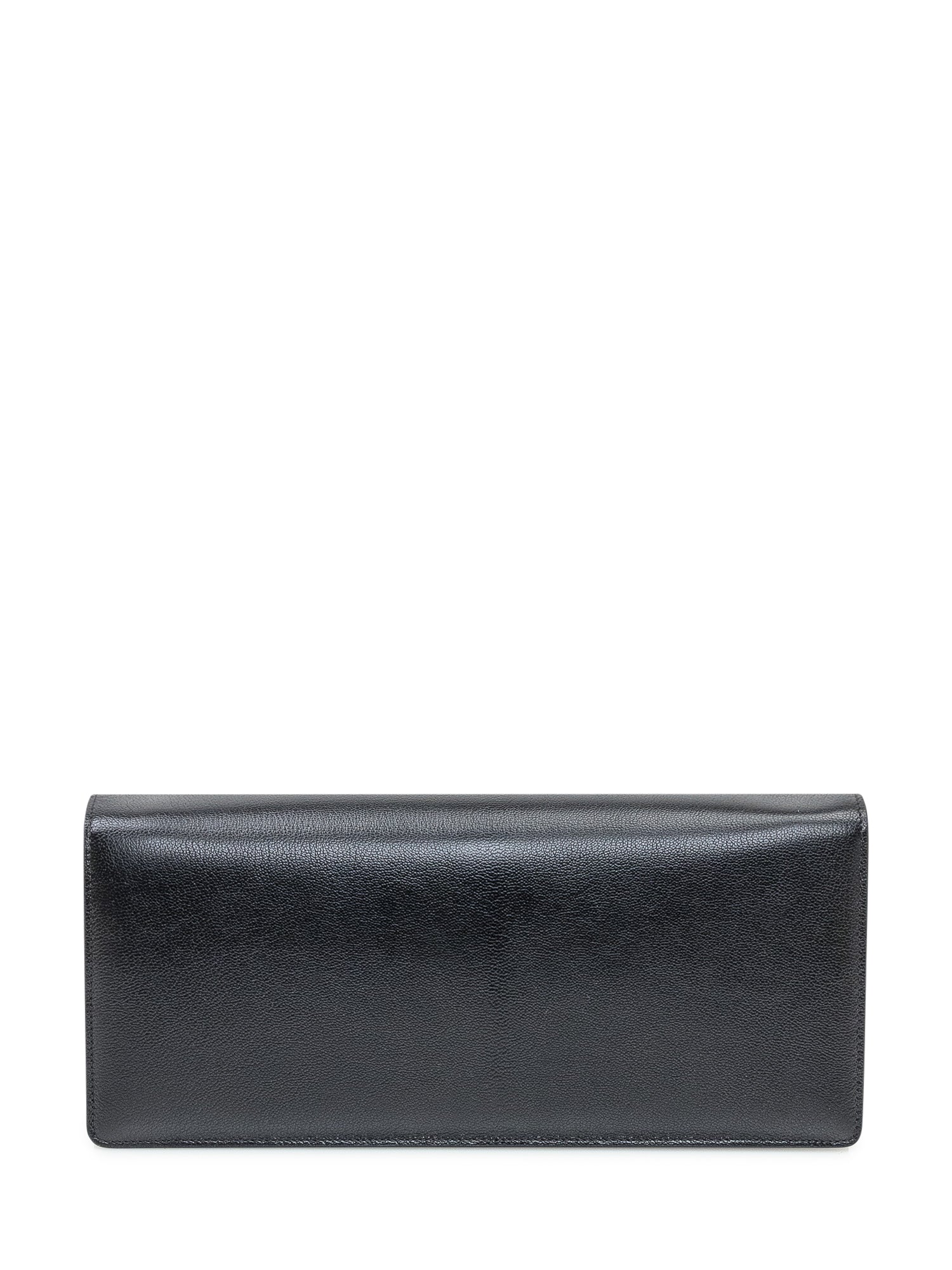 Tom Ford clutch in smooth black leather with refined metal closure.