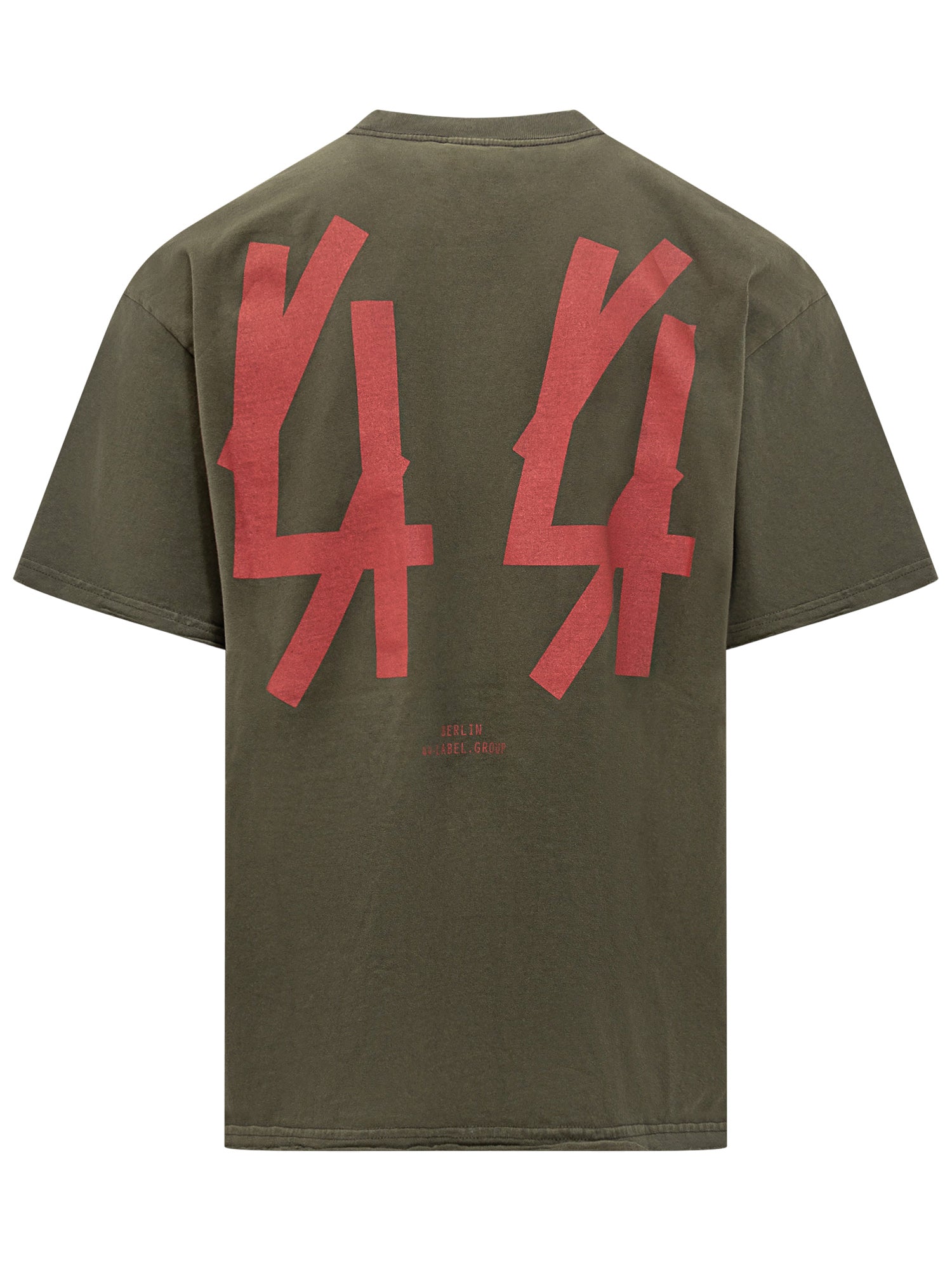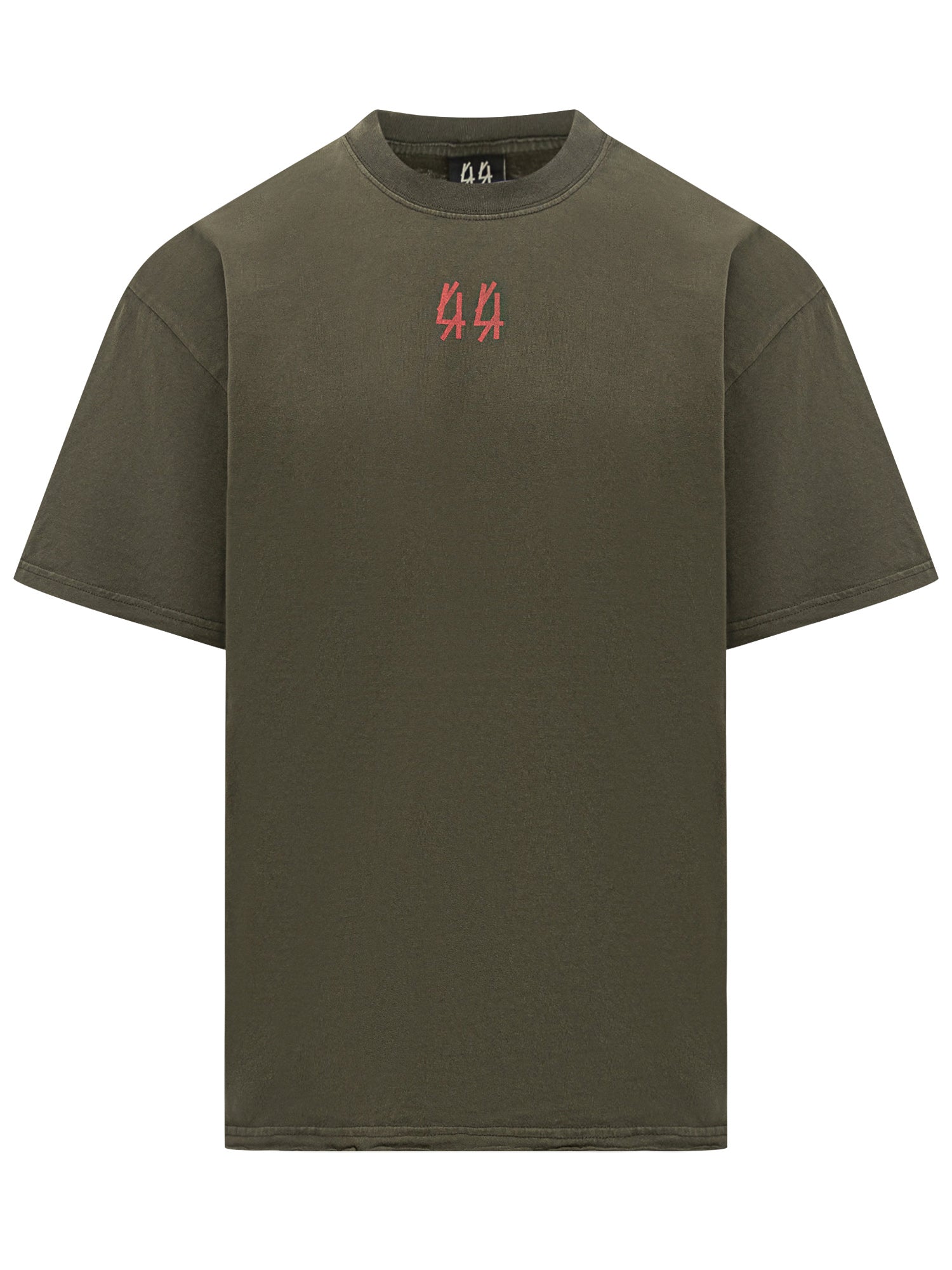 44 Label Group green cotton T-shirt featuring a relaxed fit and embroidered logo on the chest.