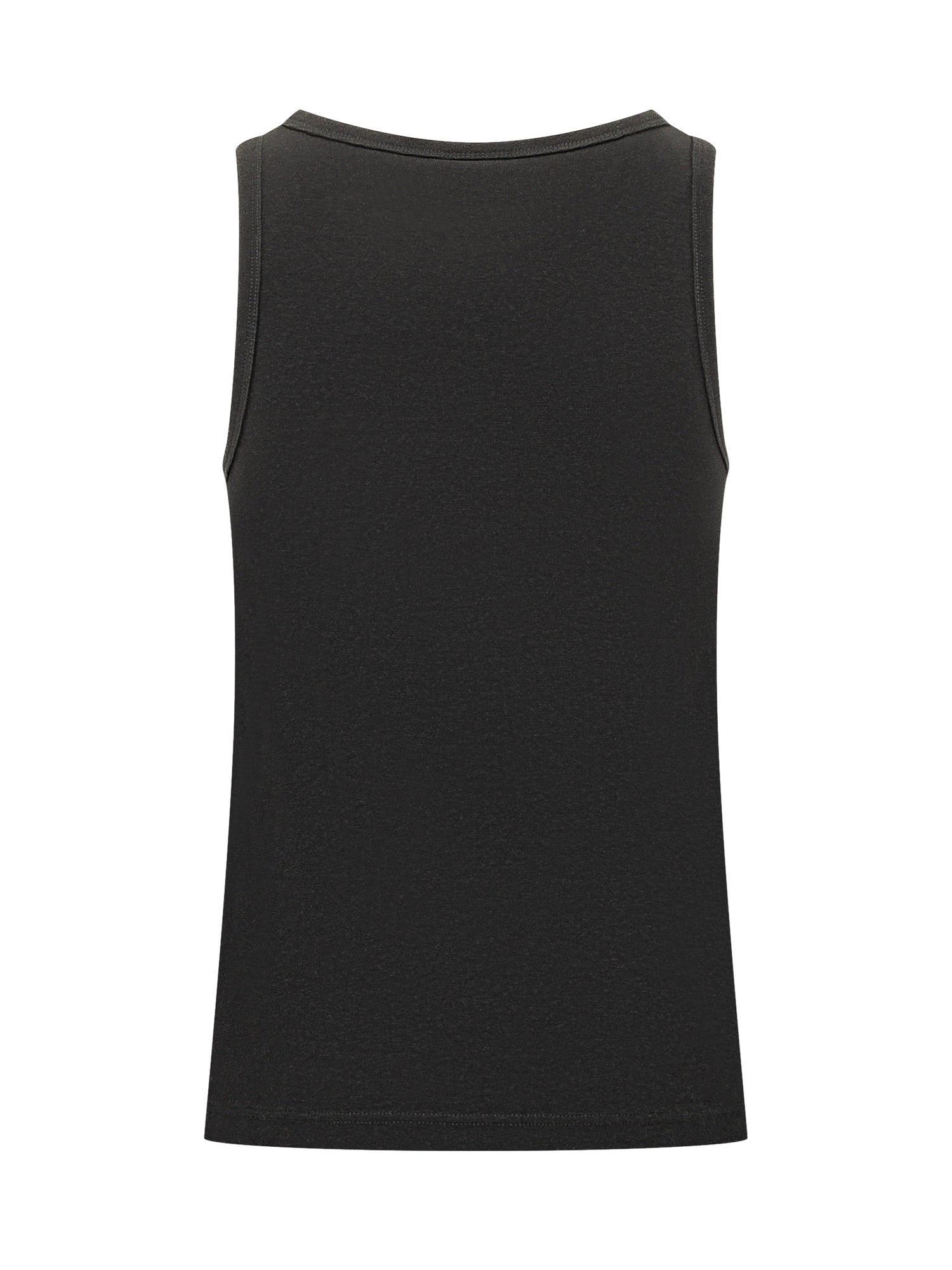 Ribbed tank top with round neck, sleeveless design with logo on chest.
